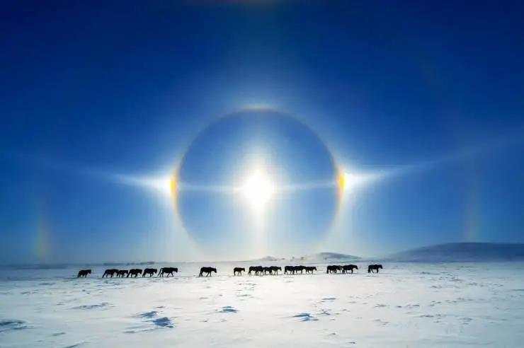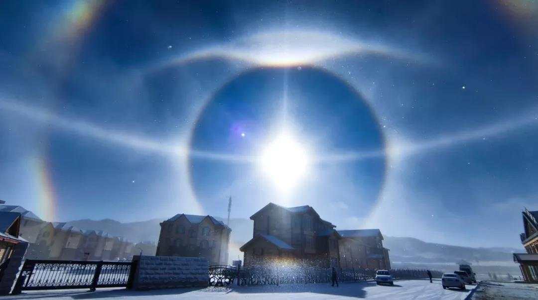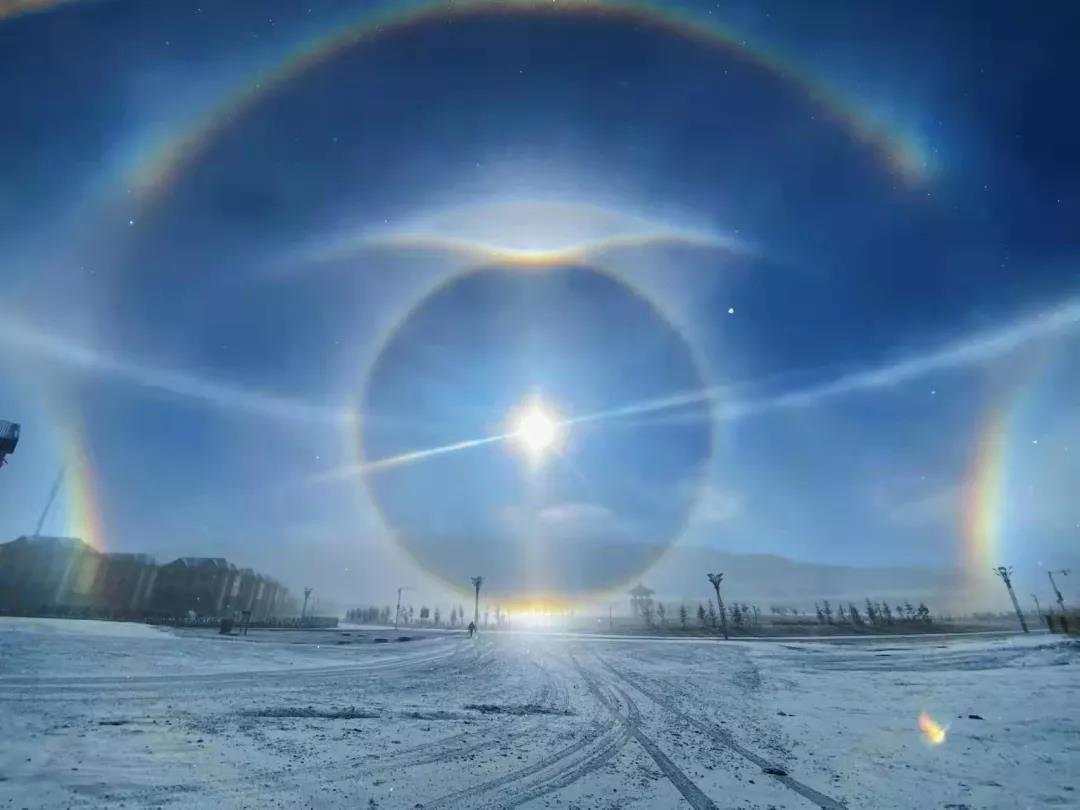 2022年1月9日,新疆赛里木湖地区上空极品组合“冰晕”。艾润 摄