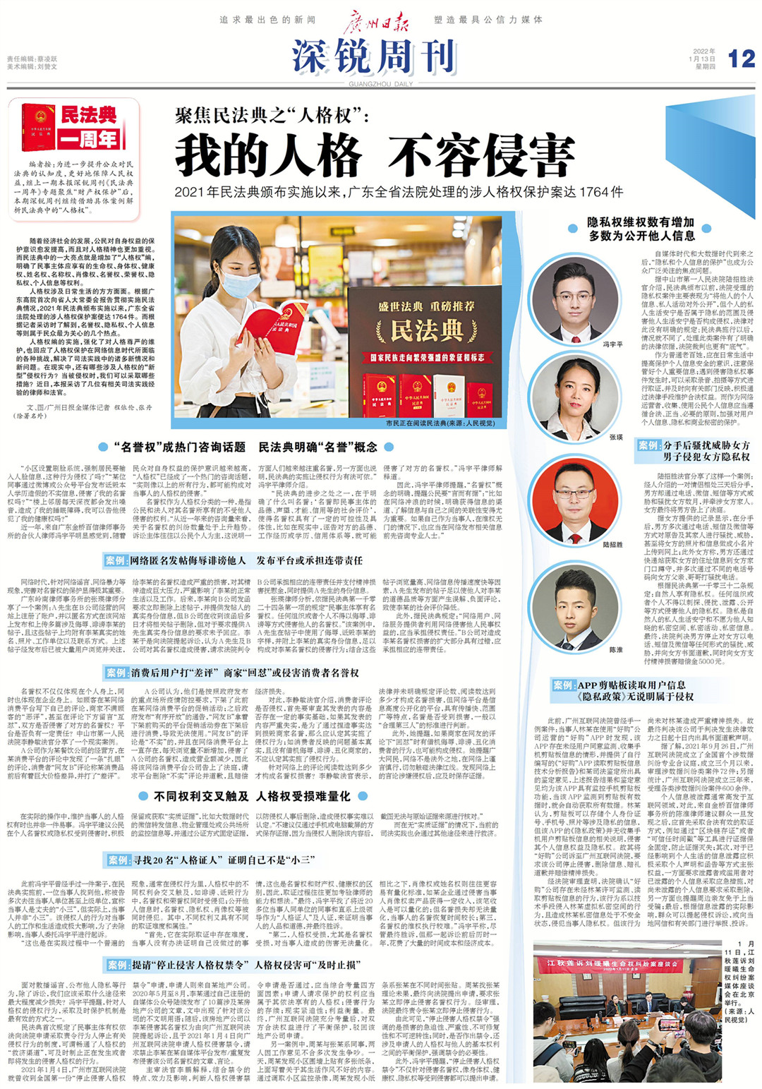 编者按:为进一步提升公众对民法典的认知度,更好地保障人民权益,继上一期本报深锐周刊《民法典一周年》专题聚焦“财产权保护”后,本期深锐周刊继续借助具体案例解析民法典中的“人格权”。