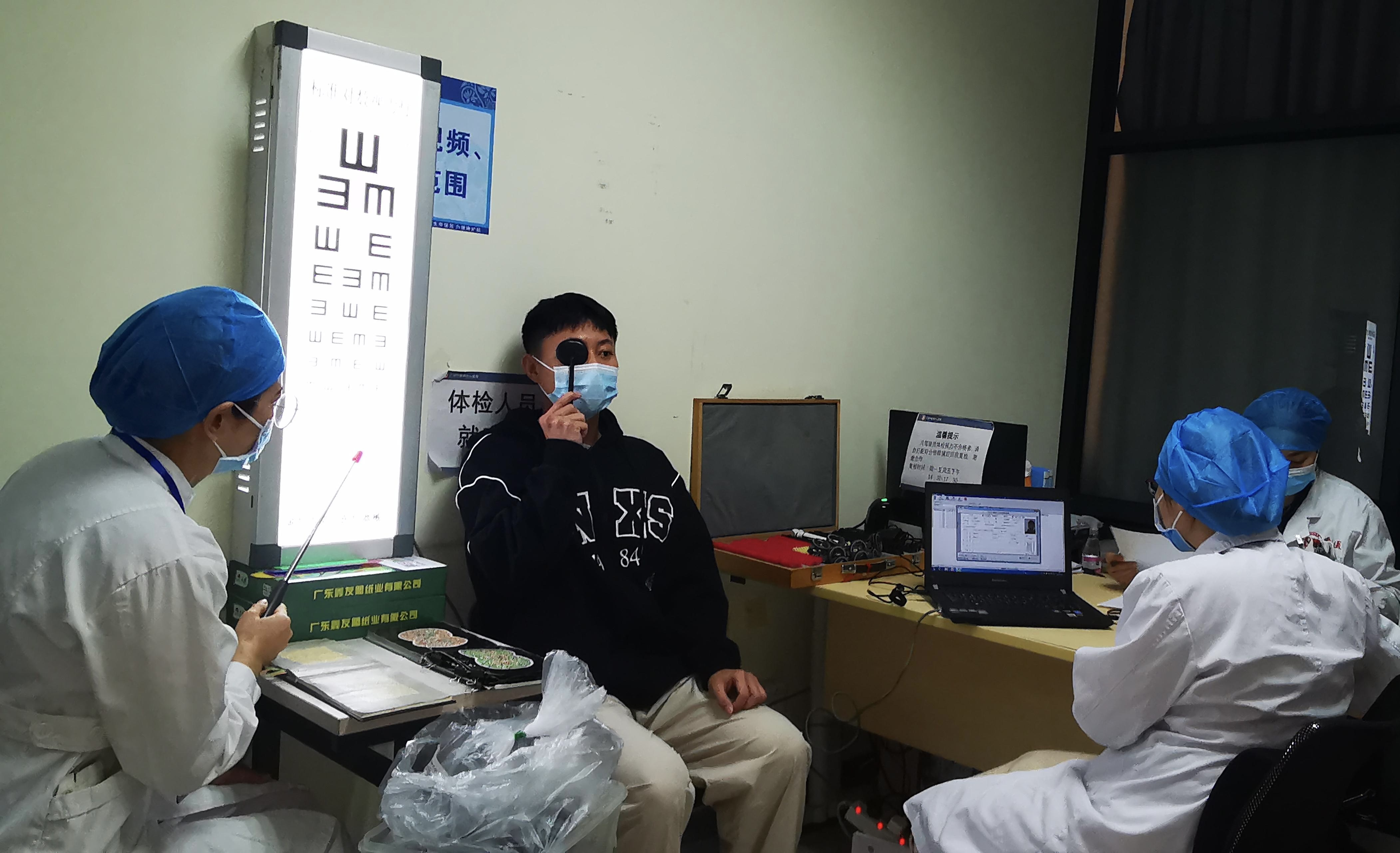 为配合春季第一场征兵体检工作,该中心在征兵体检期间暂停其他体检服务,与征兵体检工作无关人员不准进入征兵体检站。体检区内,所有应征大学生和征兵工作人员都戴着口罩。各体检室门口,应征大学生在工作人员的引导下按顺序入室分别进入不同的体检室参加体检;各体检室内,医务人员认真对应征大学生进行体检。