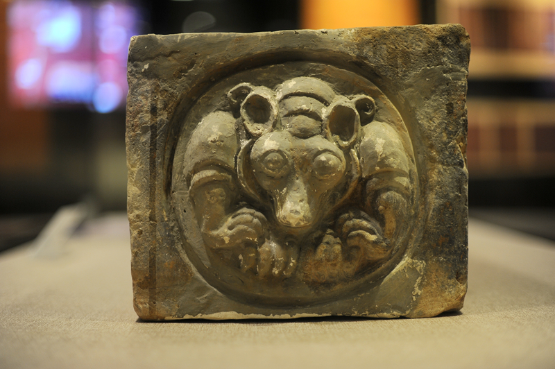 比如一件熊饰空心砖踏跺两端的熊饰。它也是新近出炉的中国考古百年广州百件精品文物之一。