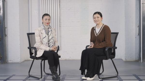 陈露(左)接受新华社记者专访。陈露站在小学员当中,有时会给他们做几个动作演示,有时是一句句清晰响亮的鼓励:“这个动作做得很棒,加油!”“慢慢站起来,再做一次!”“很好,就保持这个感觉”……