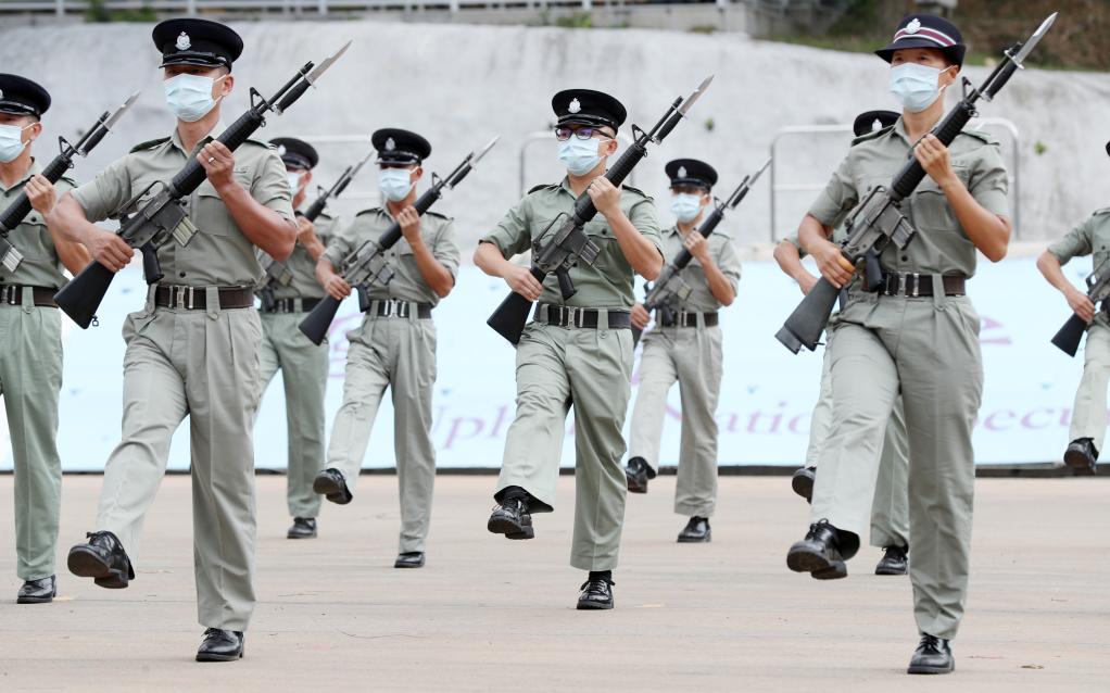 在香港警察學院,香港警察儀仗隊在進行中式步操訓練(資料圖片)。新華社記者李鋼攝