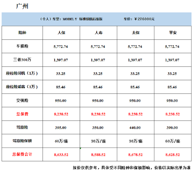 2022年广州特斯拉汽车的保费,部分保险公司报价在8000元左右。受访者供图