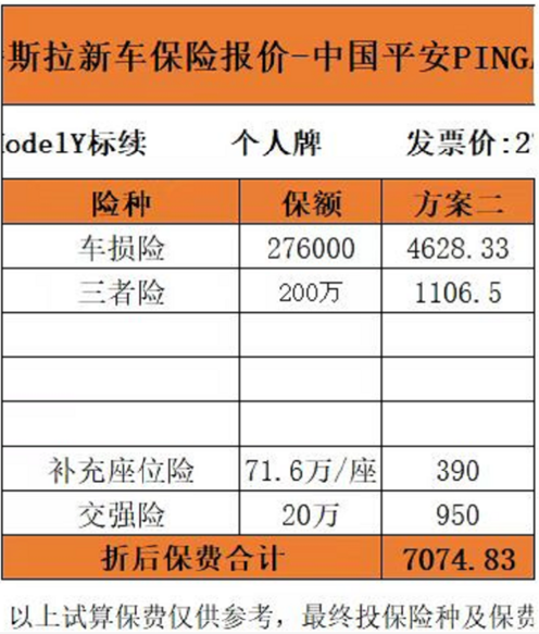 2021年广州某特斯拉车主购买的平安车险报价在7000元左右。受访者供图