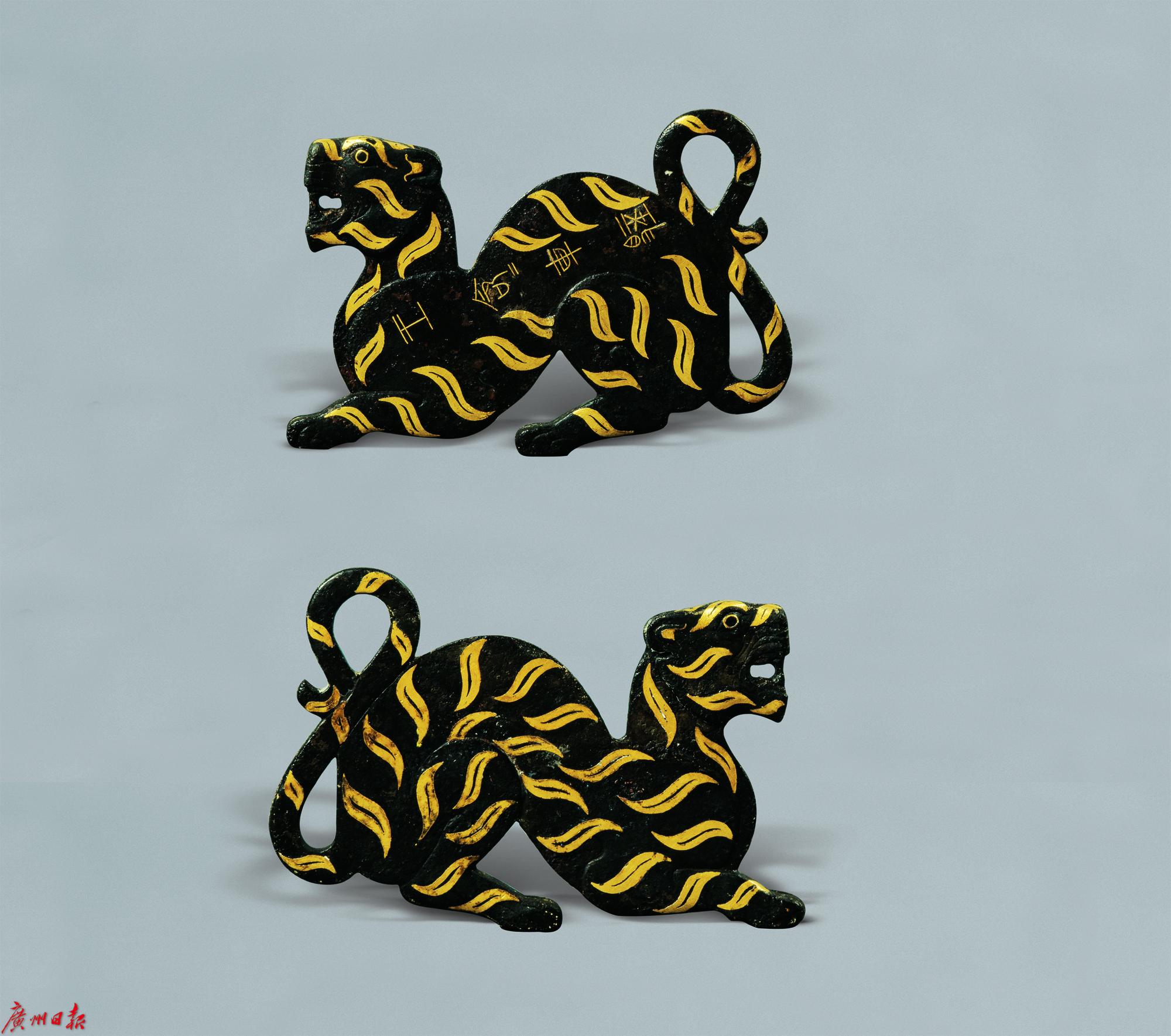 错金铭文虎节。它是迄今为止发现的唯一错金虎节。根据其上的铭文和制作风格判断,它与楚文化有关。(南越王博物院院藏)