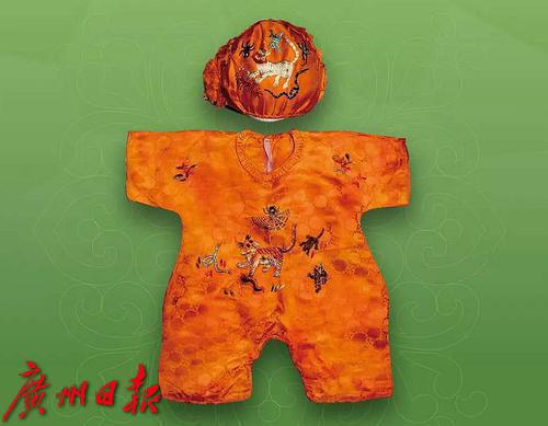 橙花缎猛虎镇五毒纹童服(孙中山大元帅府纪念馆藏)