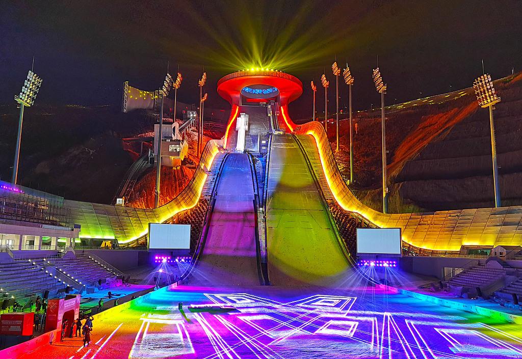 ▲国家跳台滑雪中心“雪如意”灯光秀