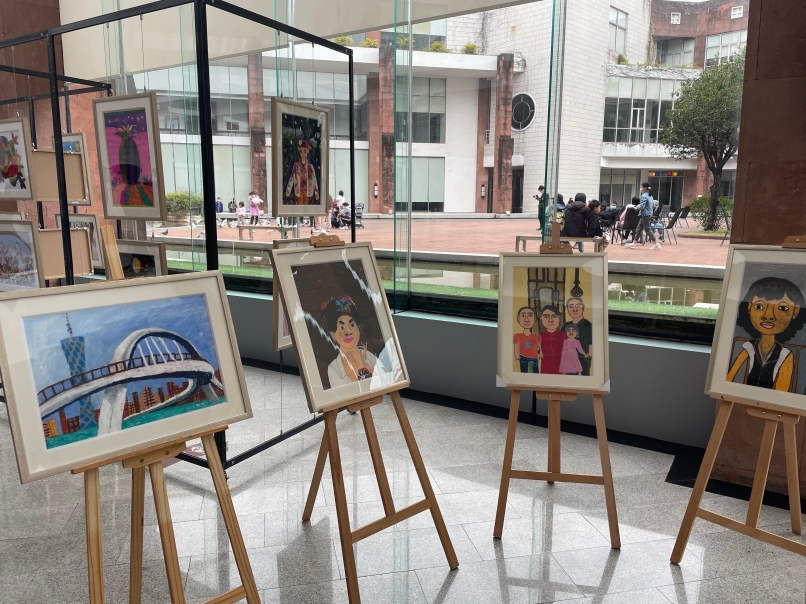 展览有两个部分,一部分是五位自闭症青年的独立作品联展,另一部分是青年设计师生与特需青年创艺者共创的绘画作品。和由此设计而成的文创衍生品。