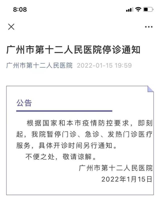 1月15日19:59,广州市第十二人民医院发布公告,全文如下: