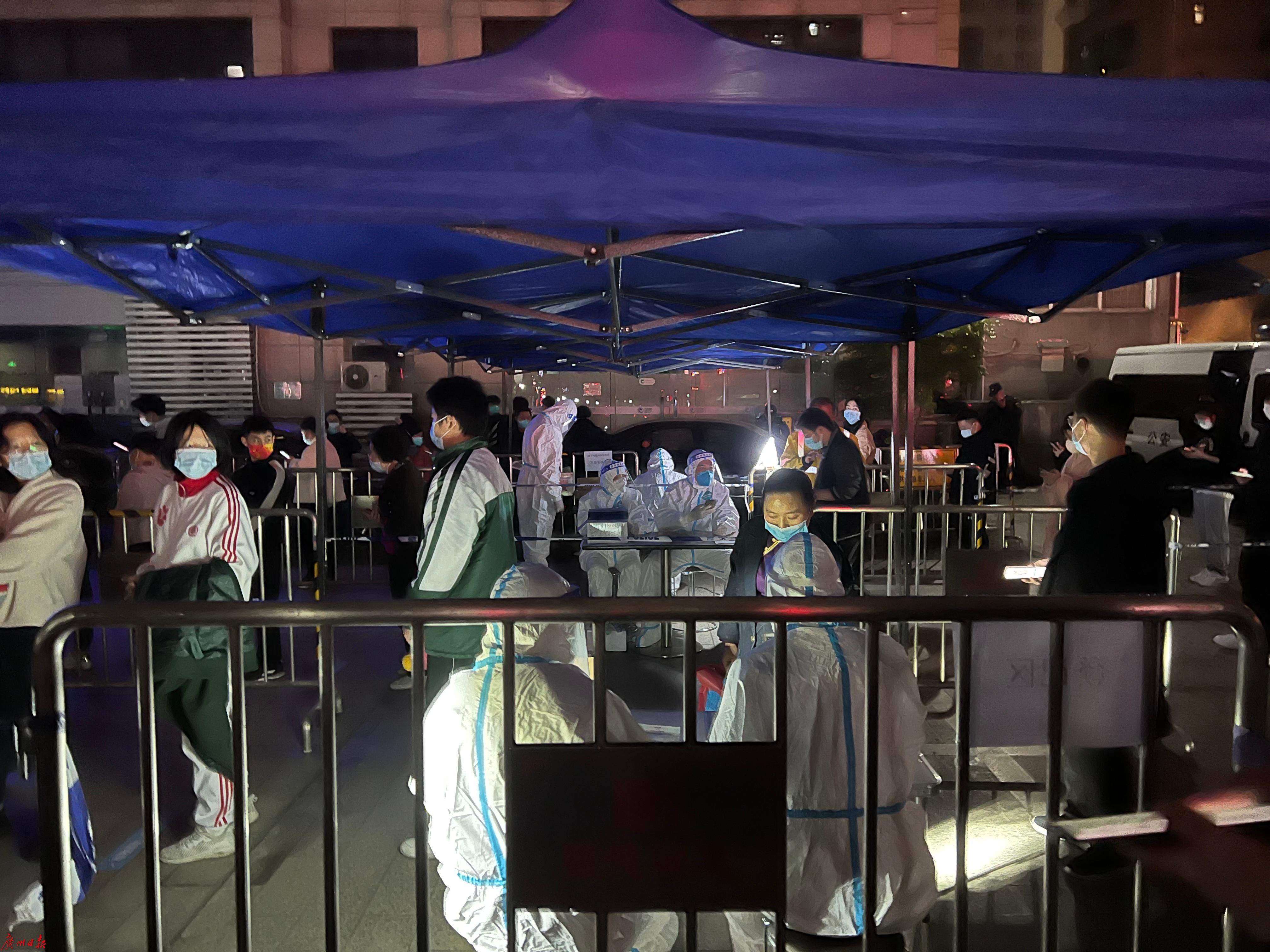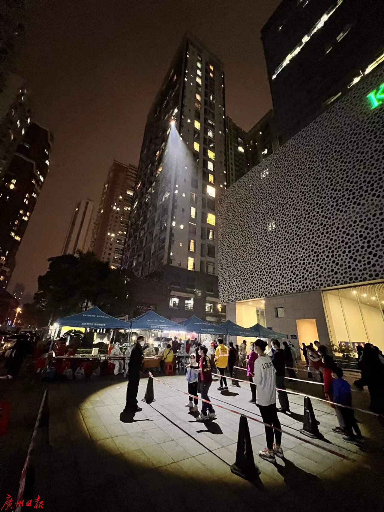 2022年1月15日晚,天河区重点场所核酸检测现场。