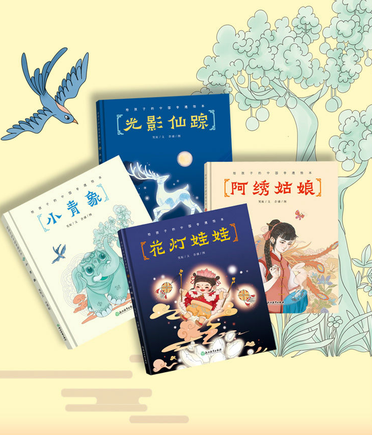 “给孩子的中国非遗绘本”系列共四册,以刺绣、灯彩、青瓷、皮影等四种中国代表性非遗项目为依托、以原创故事为载体,同时进行了出版融合创新,让小读者以多元化的形式了解跨越古今的非遗文化。书中知识性内容由毛正聪、李学林等非遗项目代表性传承人审定。