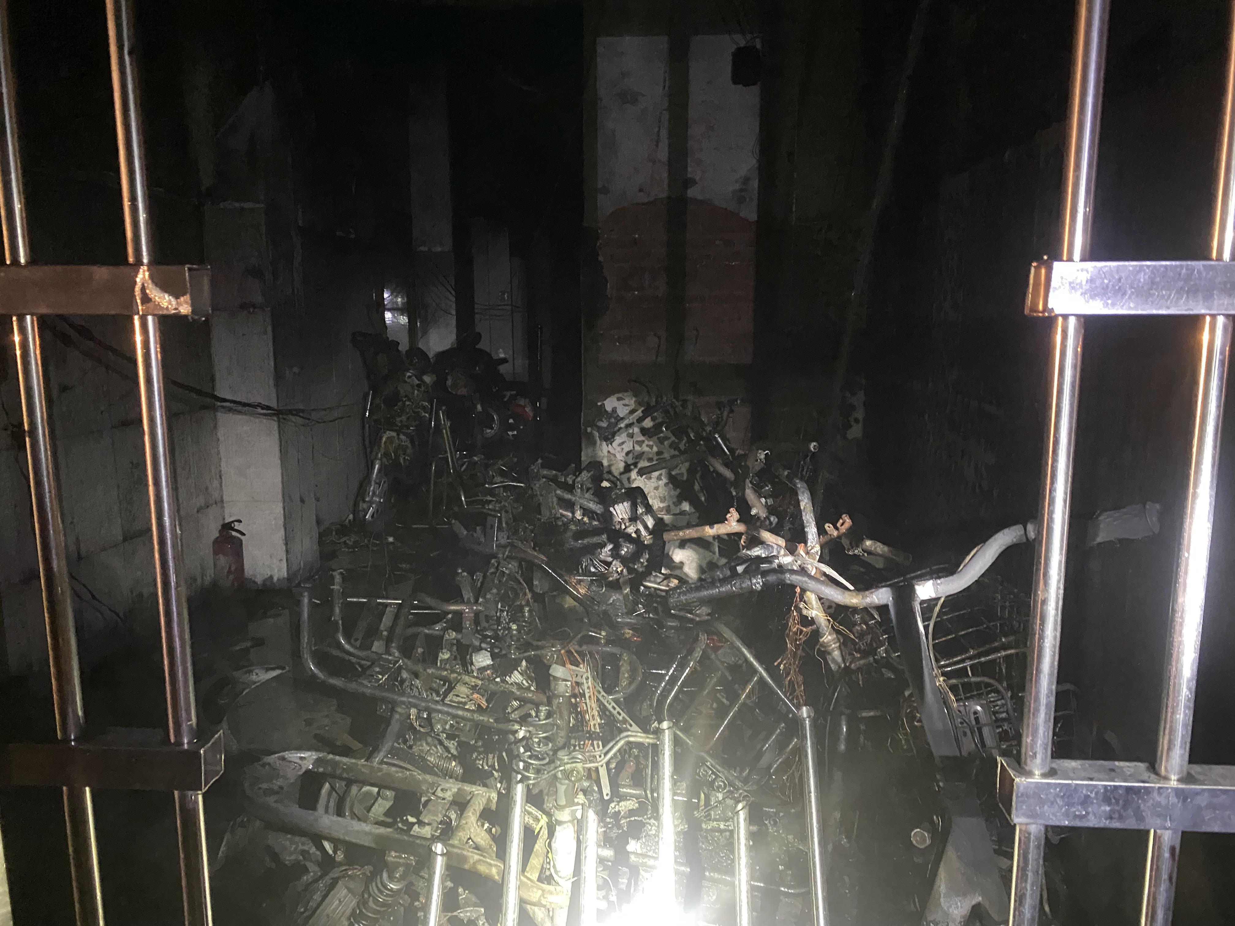 消防救援人员到达现场后,发现一栋5层高的出租屋1楼过道里停放的电动车着火,漆黑的浓烟不停从楼道中窜出,且火势较大。大队指挥员迅速了解出租屋里面的情况,发现里面还有人员被困,随后组织消防员兵分三路展开救援: