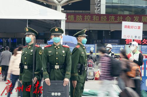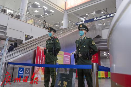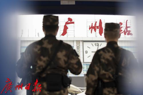2022年1月17日,2022年春运大幕正式开启,武警广东总队机动支队官兵在广州火车站巡逻执勤。他们坚守光荣战位、忠实履行使命,为和谐春运、温暖春运、安全春运保驾护航。