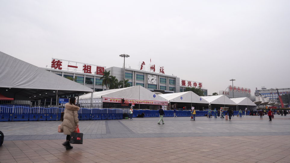 目前,越秀区有关部门已在广州火车站内搭建完成了8个长80米、宽25米的雨棚,总面积达2000平方米的雨棚可在很大程度上避免春运期间旅客遭受风吹雨淋。同时,一批翻新维修后的铁马和水马也已部署在火车站广场,将用于现场的人流管控工作。