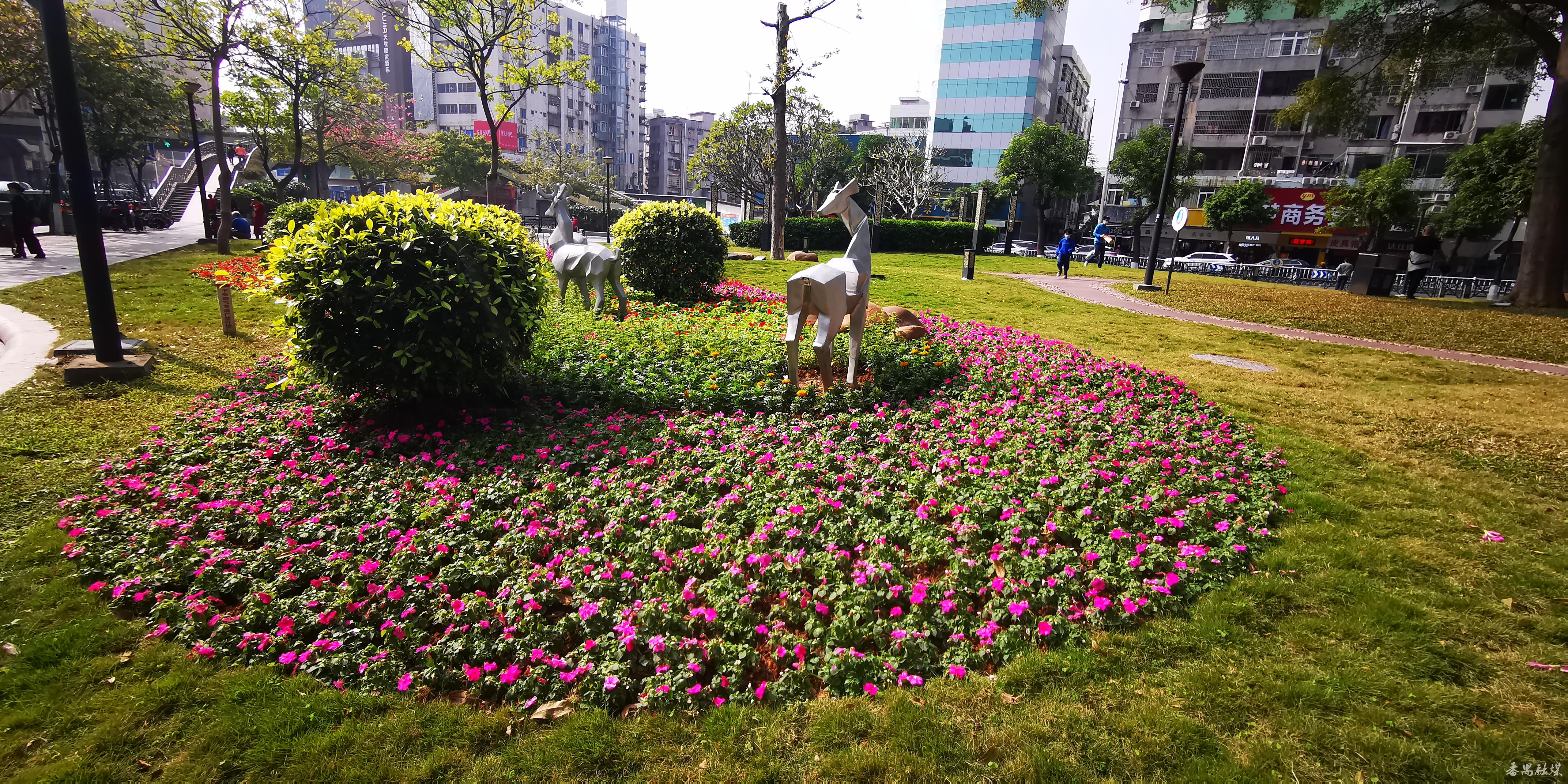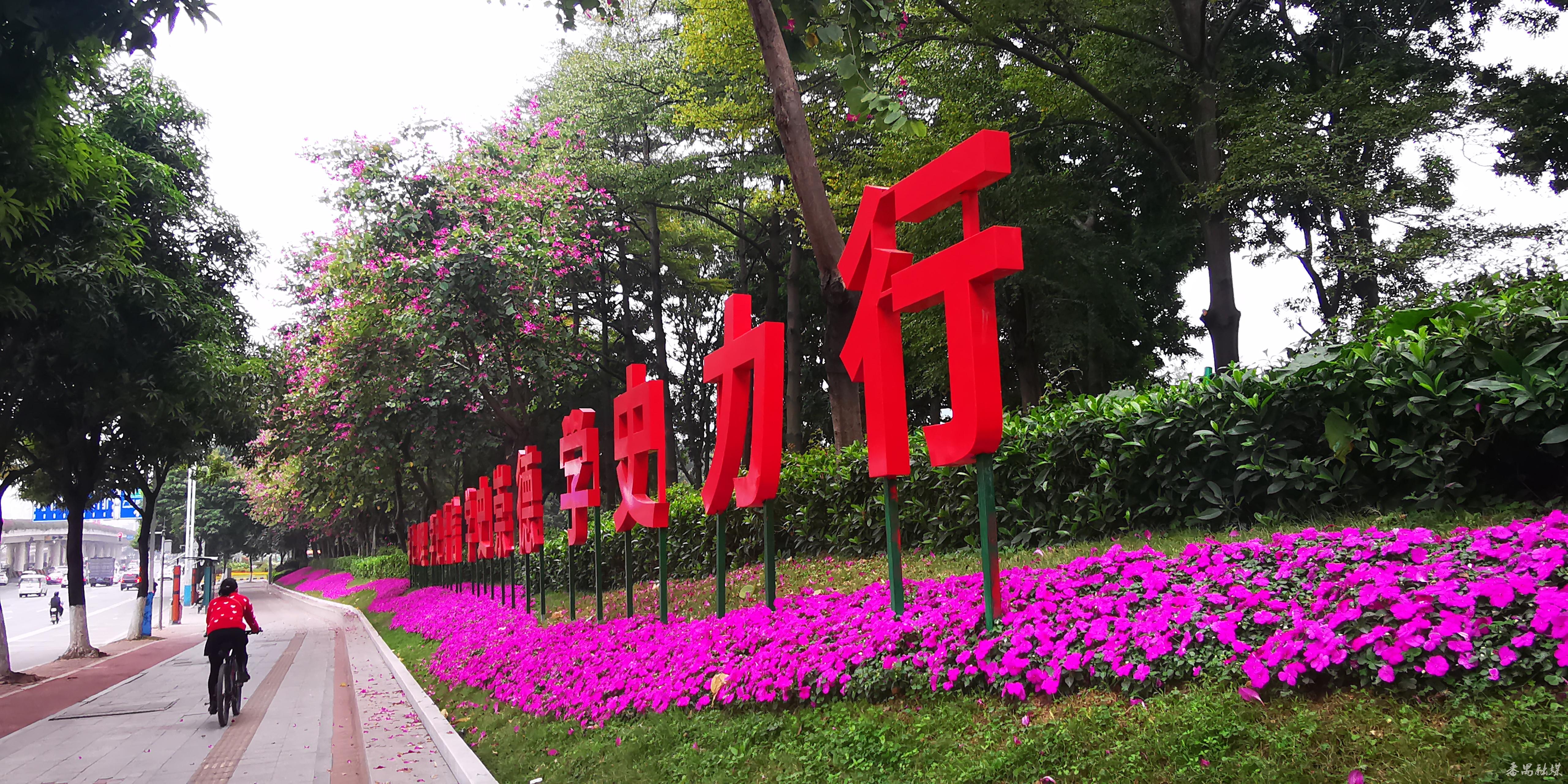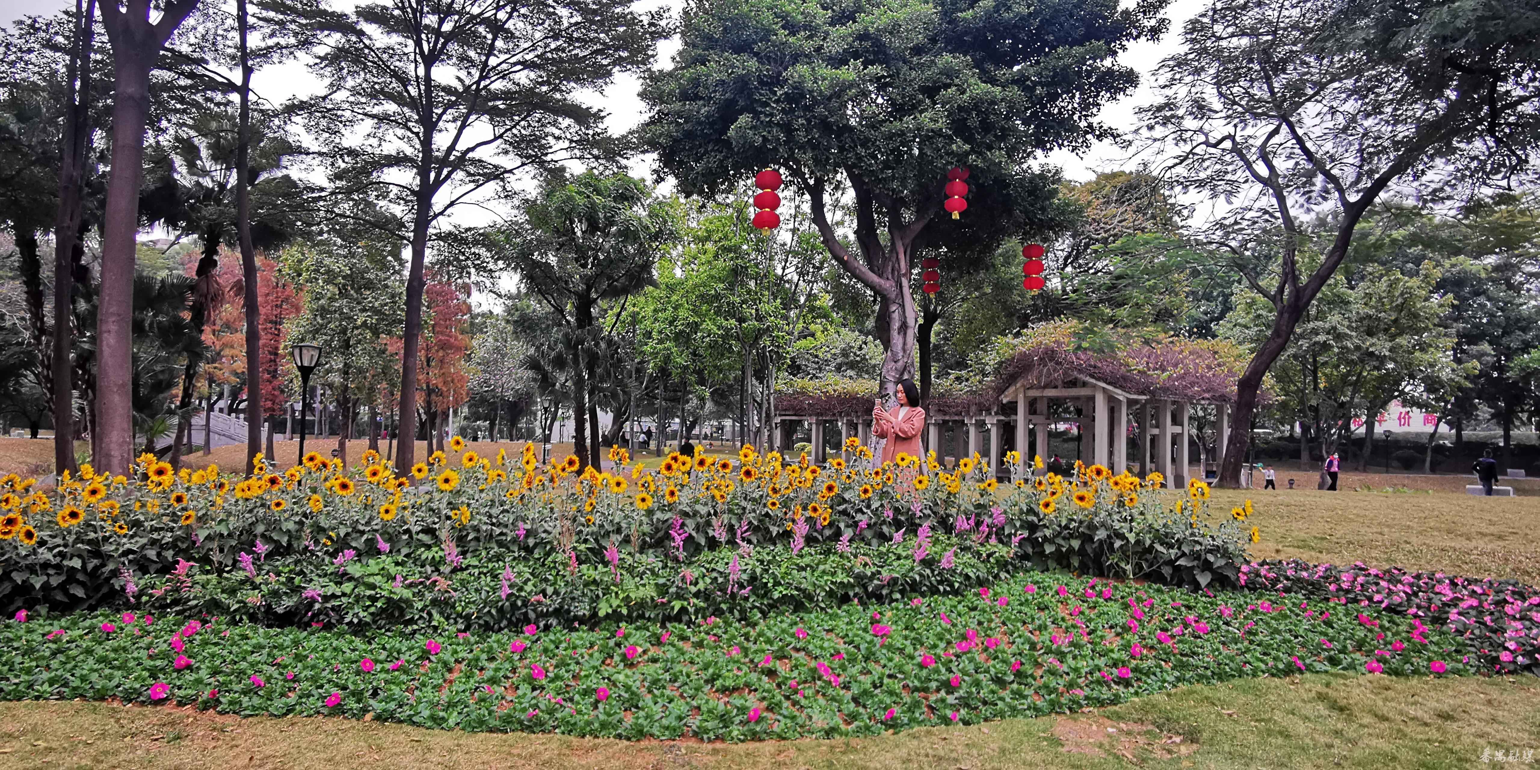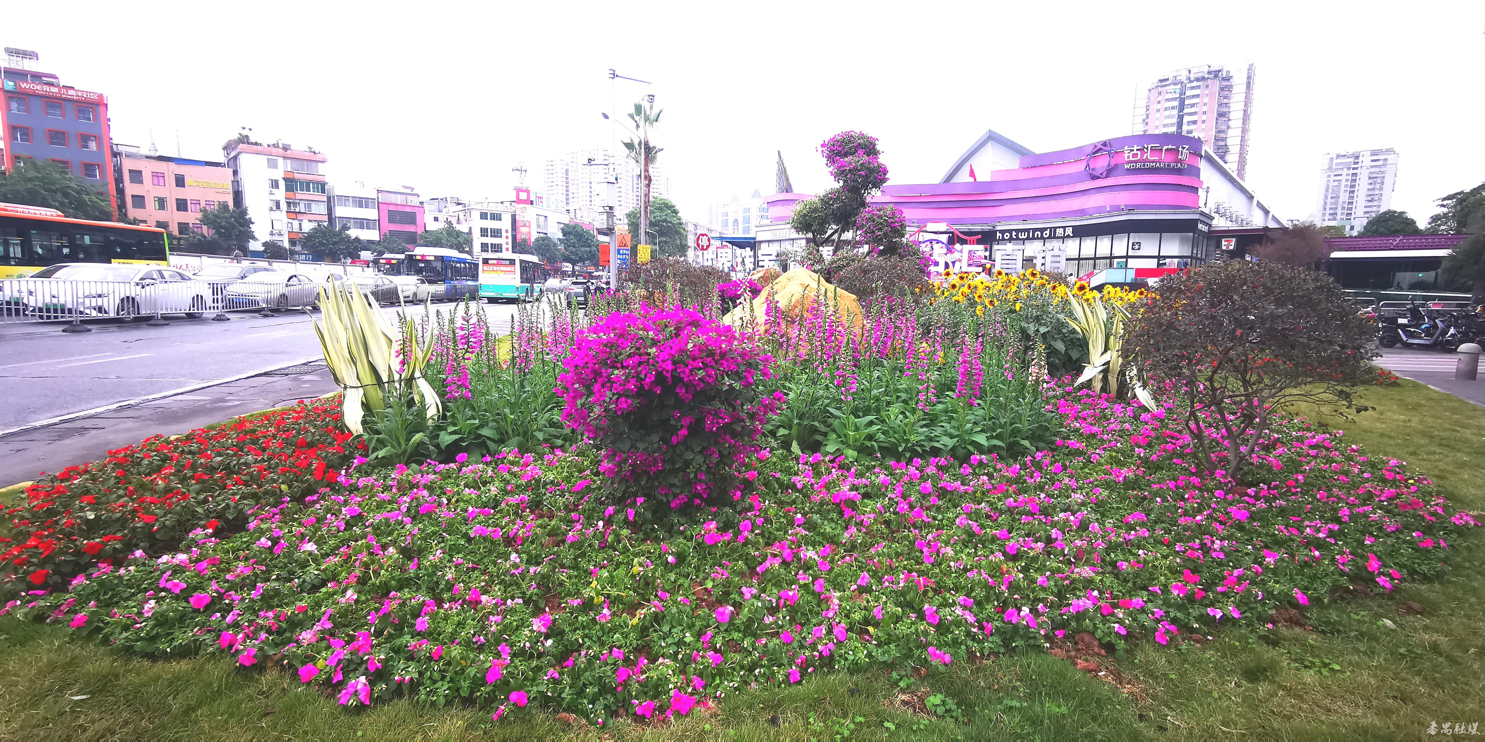 除了挂灯笼,市桥城区主干道、公园也增添了不少花色景观。在平康公园、星海公园、顺发公园,新增加了多处花坛、花境,种植了向日葵、长春花、万寿菊、四季秋海棠、绣球花、凤仙花、簕杜鹃等,色彩丰富;在大北路、富华路、桥兴大道、光明北路、盛泰路、清河东路、德兴路等路段,绿化带的鲜花如春天般争芳斗艳;平康路、清河东路、大北路等道路中央隔离栏上的花篮,也是花团锦簇。