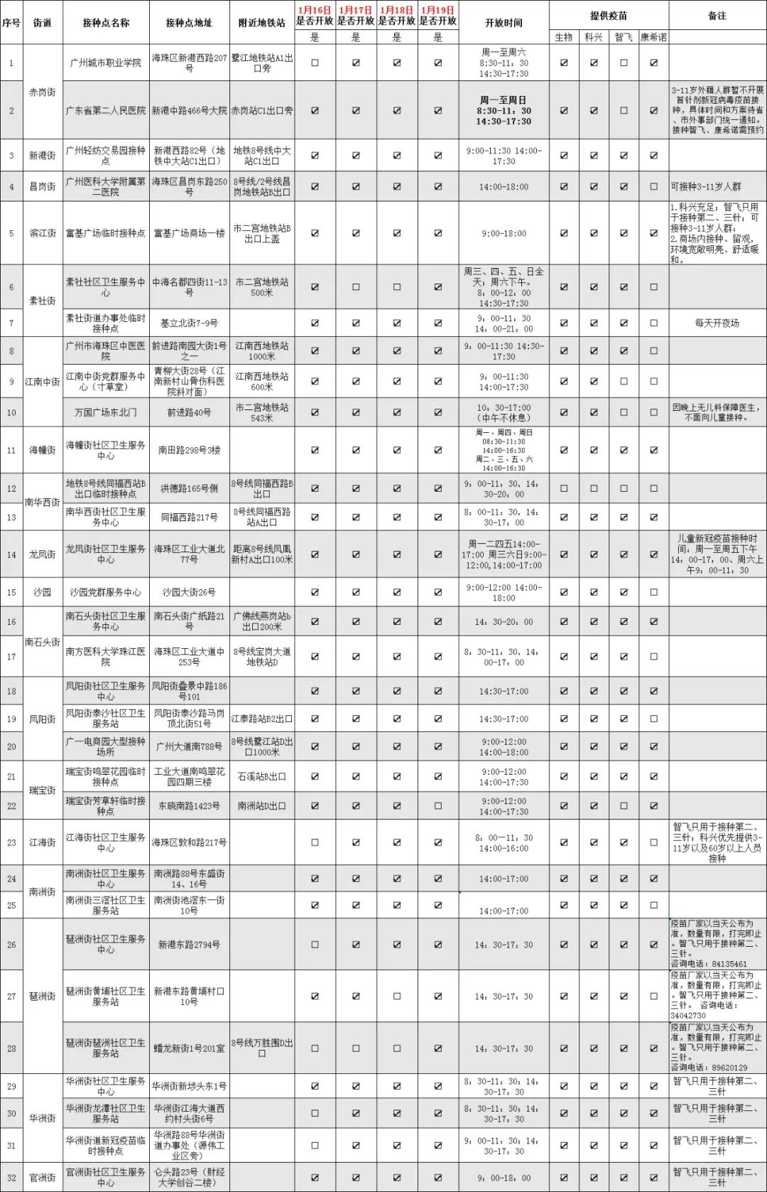 1月18-19日海珠区新冠病毒疫苗儿童可接种点,非专场