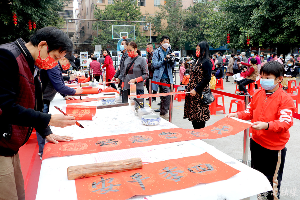 活动的项目包括三人篮球赛、象棋公开赛、广场舞表演赛和迎新春送春联活动。在迎新春送春联活动中,只见书法家们用饱含深情的笔墨书写着对新春的祝福,一幅幅喜庆的“福”字飘洒着浓浓的墨香,让大家感受渐行渐近的浓浓年味。活动持续为群众书写对联 100 余副、“福”字 300 余张。