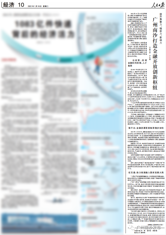 “十四五”规划纲要明确提出,支持香港提升国际金融、航运、贸易中心和国际航空枢纽地位,推进广州南沙等粤港澳重大合作平台建设。