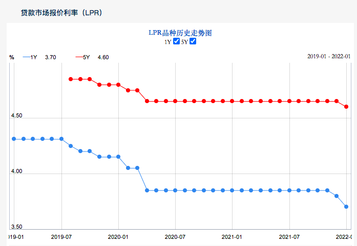 1月20日,中国人民银行官网公布,2022年1月20日贷款市场报价利率(LPR)为:1年期LPR为3.7%,5年期以上LPR为4.6%,较上期分别下调10BP和5BP。