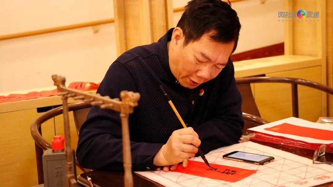 值得一提的是,活动还邀请了广东省书法家协会会员、长洲街道非公企业联合党支部书记曾国健来到现场,为尊养苑长者挥毫书写新春对联。
