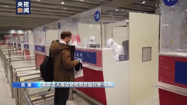 在冬奥专区,执勤民警全部都实行集中执勤7天、集中观察7天、健康监测7天的“7+7+7”的闭环管理模式。检查台也采用封闭式验放模式,旅客可以通过前台这个玻璃窗口来递接护照,这样可以最大限度地减少不必要的接触。