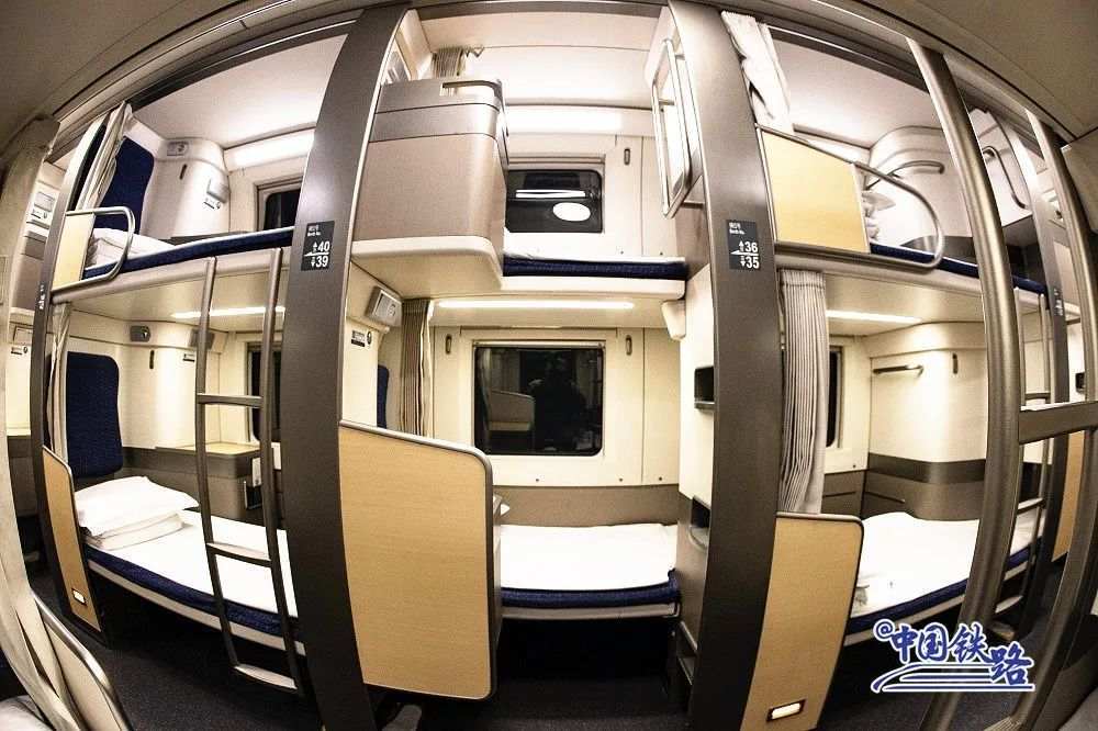 包厢设计比照航空商务舱,脚下与旁边铺位头部空间共享,可大幅提高空间利用效率。这就是为什么会出现“凹”铺位和“凸”铺位的原因。