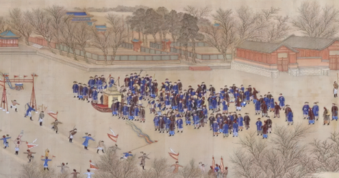 太液池上冰面平滑如镜,岸边1000多名经过严格挑选的官兵整装待发。86岁高龄的乾隆皇帝在文武百官陪同下前往观看冰嬉活动——这场比赛上每一位溜冰运动员的动作与神态,都被清代画家记录了下来,这就是《冰嬉图》。