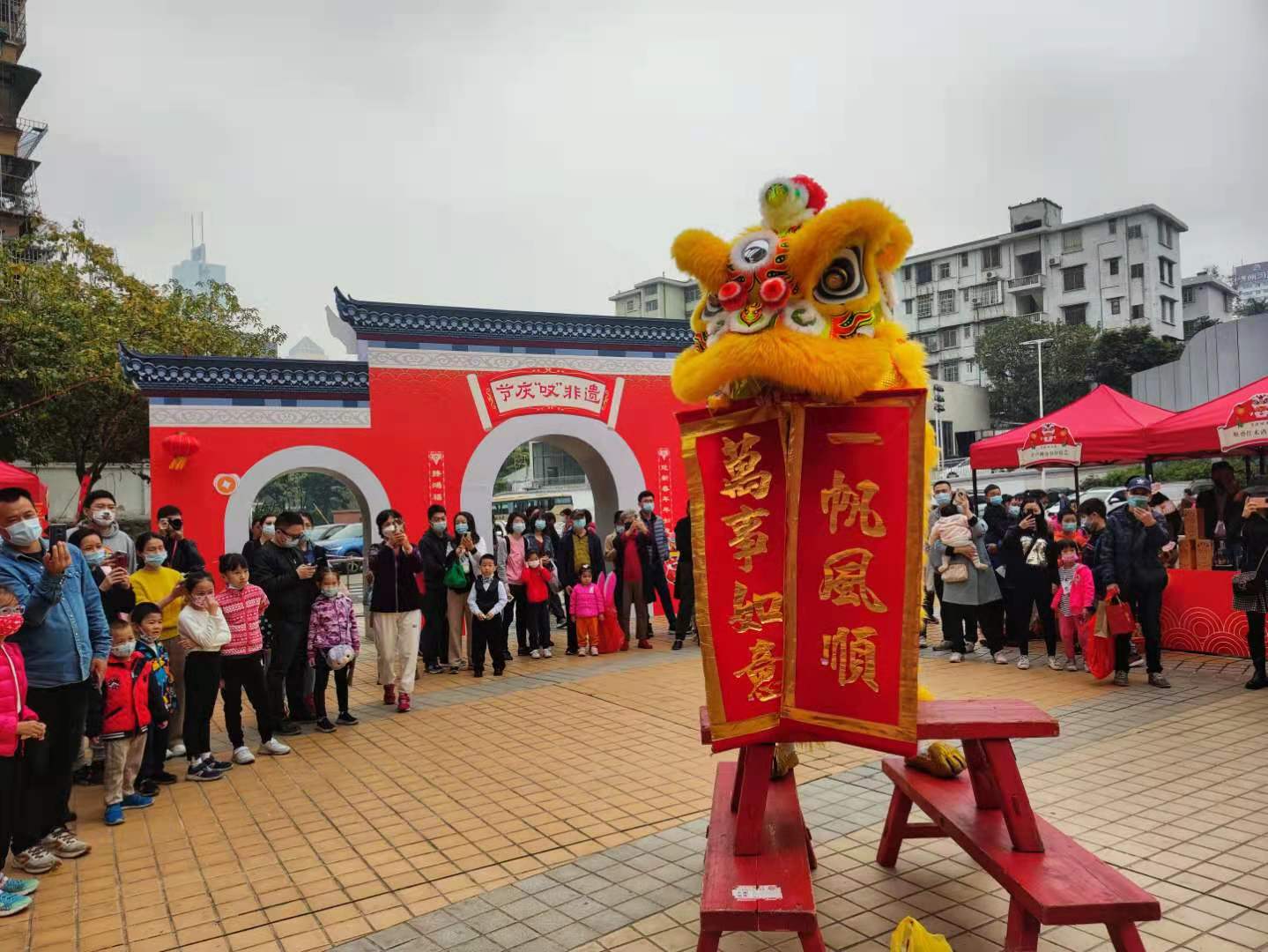 1月22日,节庆“叹”非遗——非遗年货墟市在广东省文化馆(广东省非物质文化遗产保护中心)正式开启!这是一次汇集广州、佛山、肇庆、清远等各地特色非遗年货的墟市,分为年货区、非遗手工艺区、挥春送福区、游戏互动区四大区域,在现场不仅能购买到广东非遗年货、品尝到非遗美食、收到到书法家的新春祝福,还能体验到传统投壶游戏和佛山木版年画印制。春联、灯笼、年画、红包……满满新年的气息。