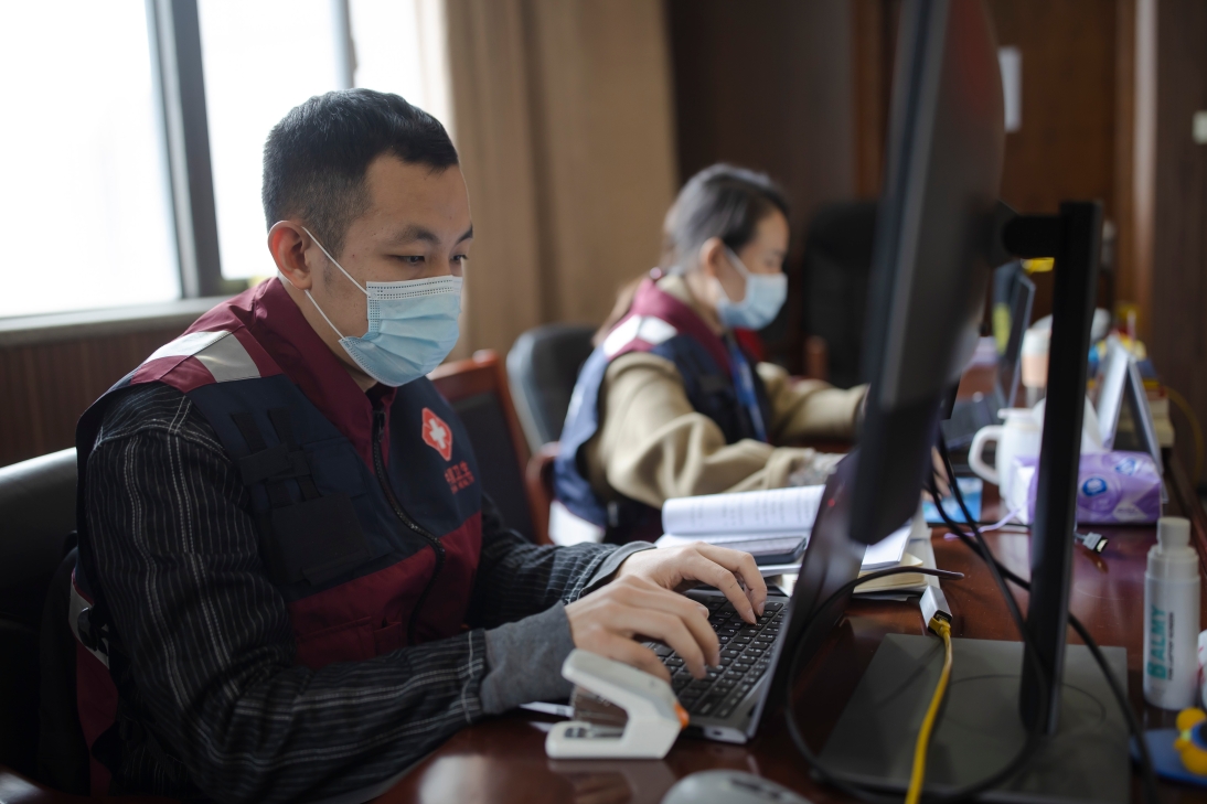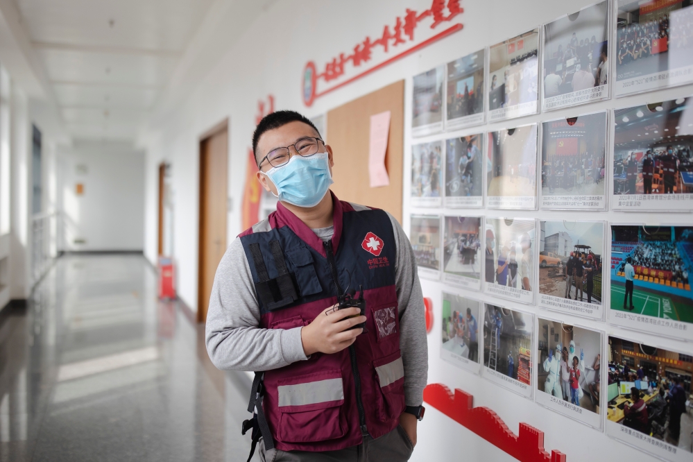 市疾控新冠防控专班第三流调大队队员 代伯峰:我去年入职疾控,从之前防护服都不会穿,到现在专业技能提高了。这比以前的工作苦了很多,漏夜工作也是常有的事。但是每天都在直面疫情中守护着人民健康,感觉挺好。