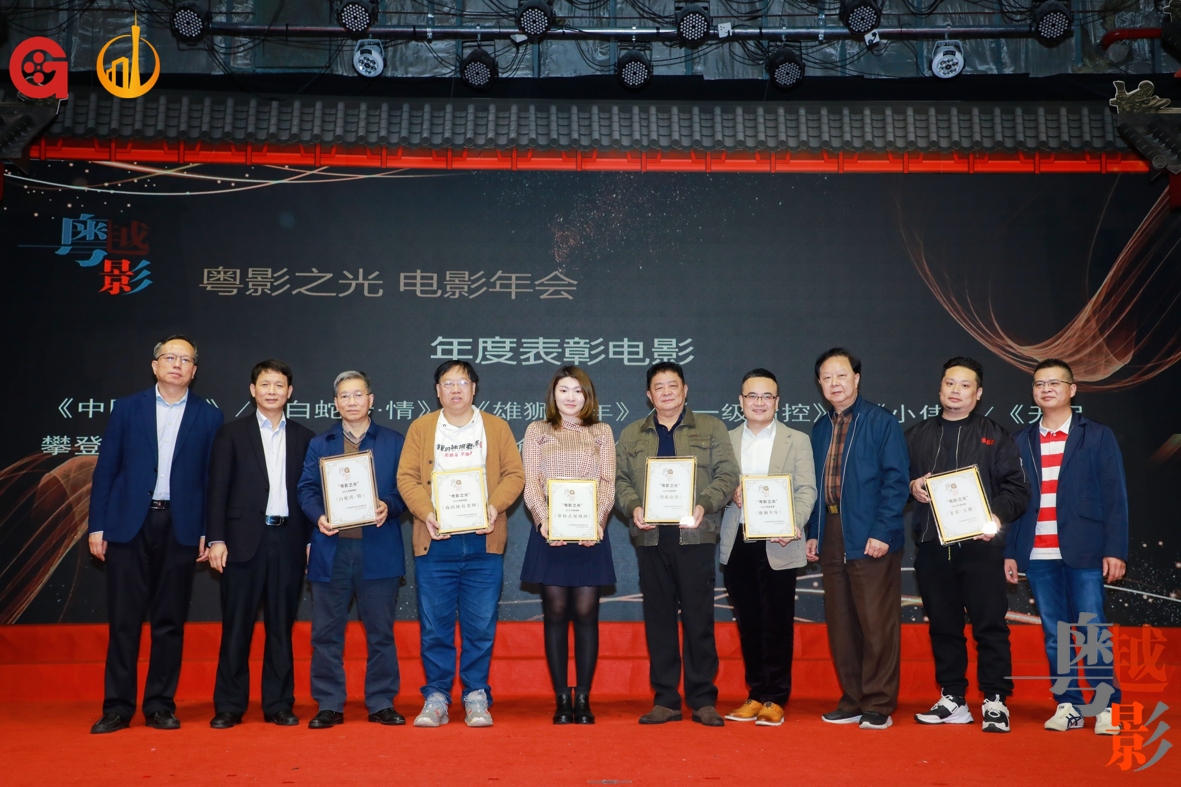 2021年广东电影成绩靓丽,广东参与出品的电影票房破165.55亿元,在众多爆款电影中,也频现广东电影联合出品的身影。为了向过去一年的优秀电影作品致敬,褒奖他们为推动广东电影发展而付出努力,粤影之光电影年会特设了“粤影之光年度电影”,向《中国医生》《白蛇传∙情》《雄狮少年》《一级指控》《小伟》《无尽攀登》《带你去见我妈》《烈焰危情》《非常•主播》《我的体育老师》等粤产电影颁发荣誉。