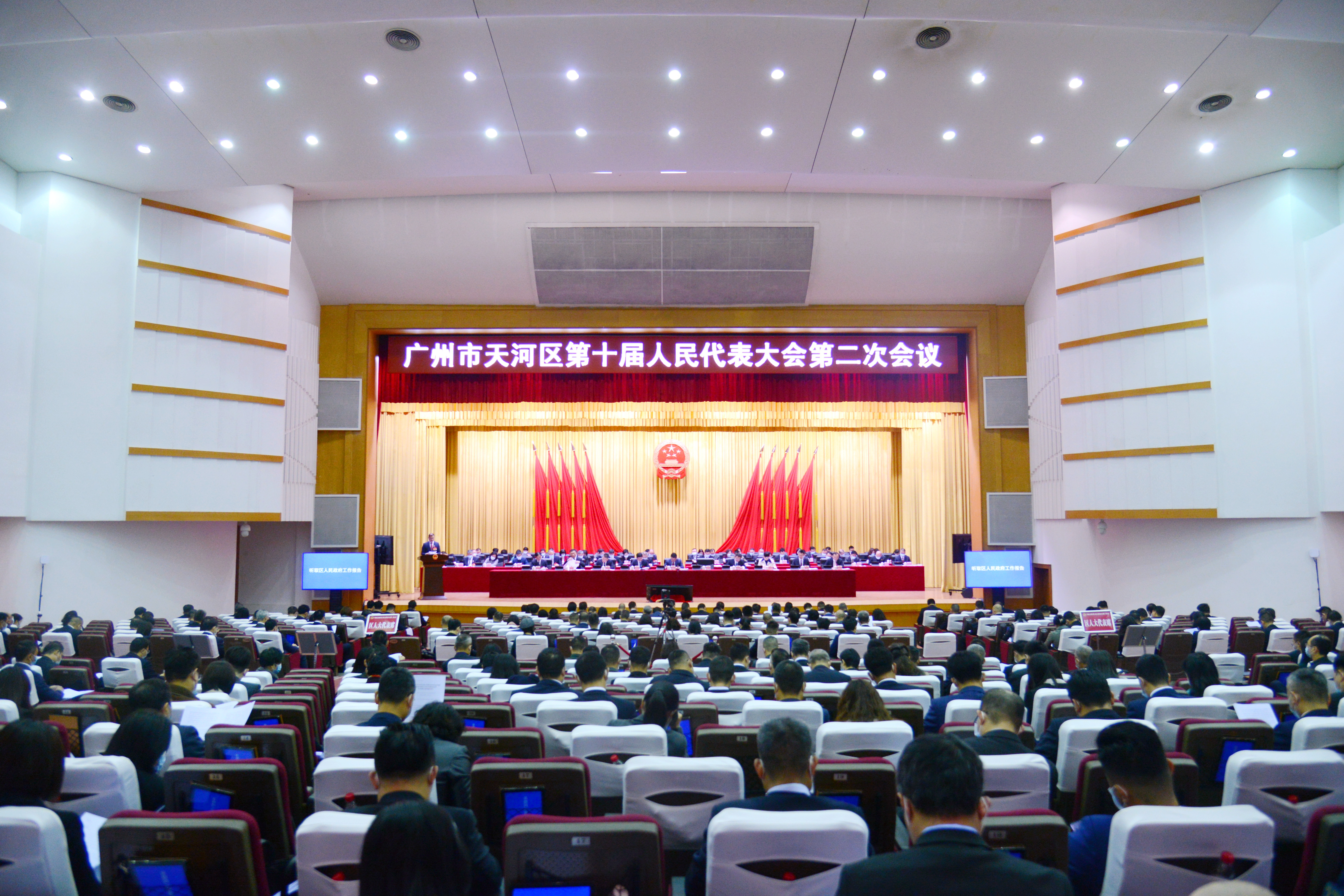 1月21日上午,广州市天河区第十届人民代表大会第二次会议开幕。区长陈建荣向大会作政府工作报告。