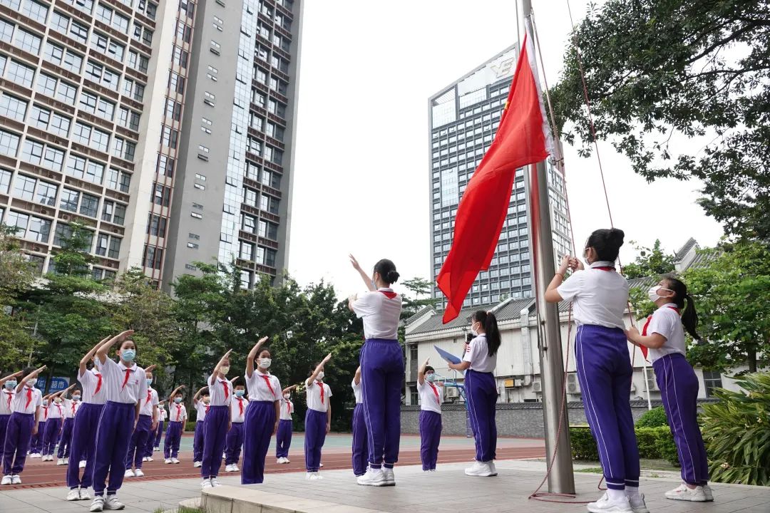 广雅小学湾畔校区,开学第一天的升旗仪式。