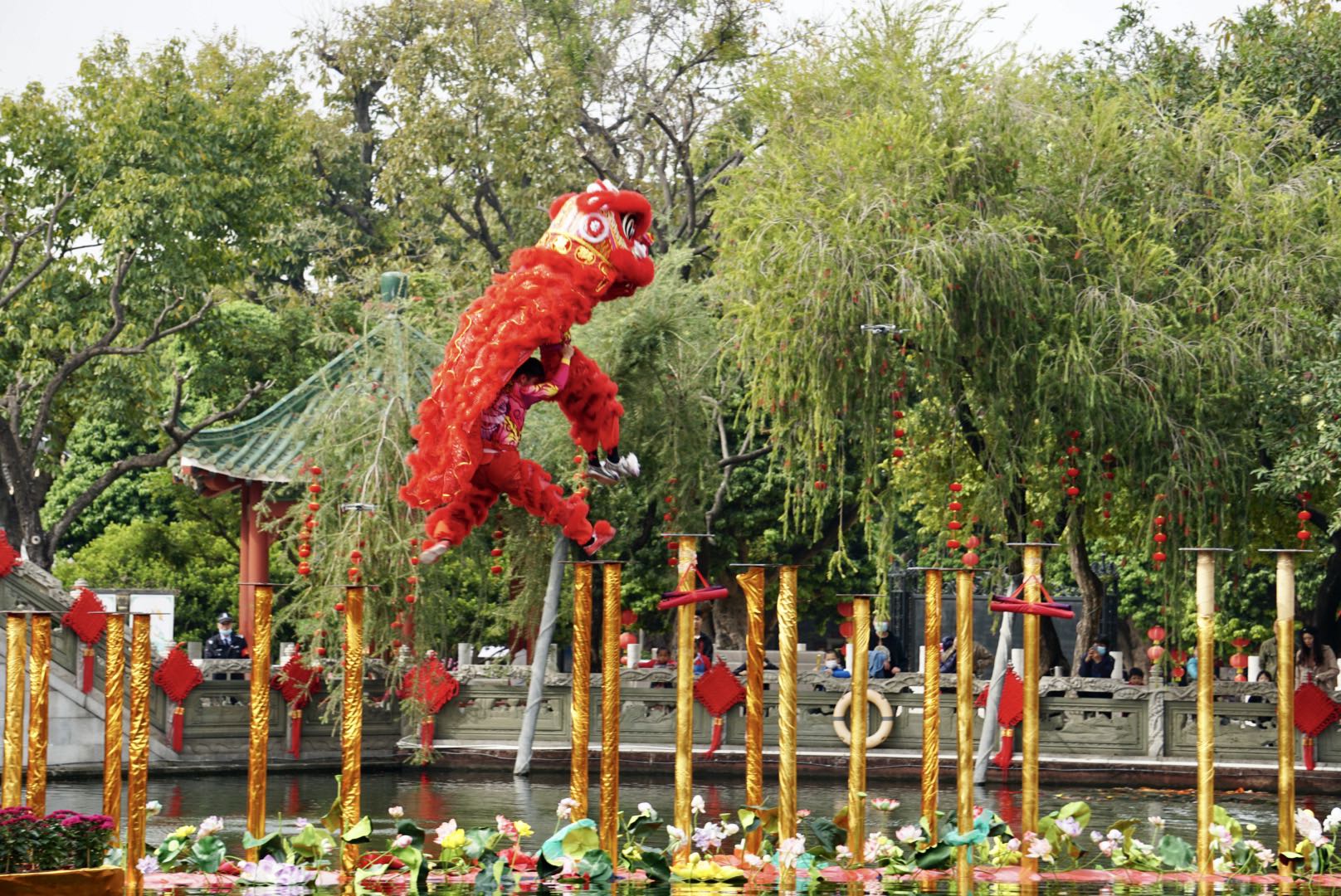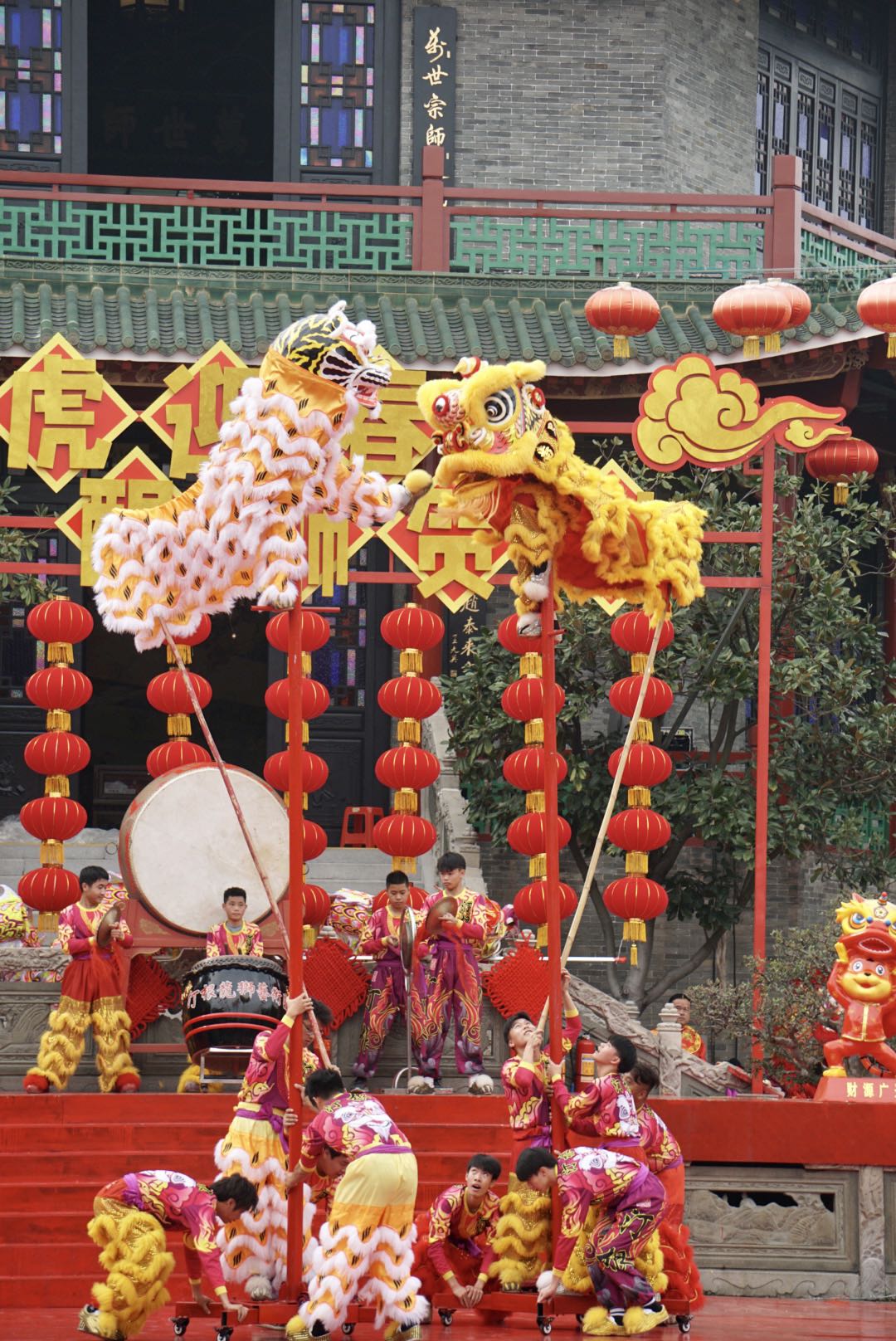 无醒狮,不春节。吉利又寓意深远的醒狮是岭南地区的传统民俗文化,每逢喜庆节日,必有醒狮助兴。1月23日,“金虎迎春,醒狮贺岁”——宝墨园新春岭南醒狮民俗文化节启动。现场剧透了春节期间水上醒狮歌舞表演菜单——龙腾虎跃贺新春、鼓舞飞扬歌盛世、群狮贺岁送祝福、虎上高杆步步高,一系列精彩纷呈的醒狮绝技彰显了水上高桩狮虎争霸的威武雄风。