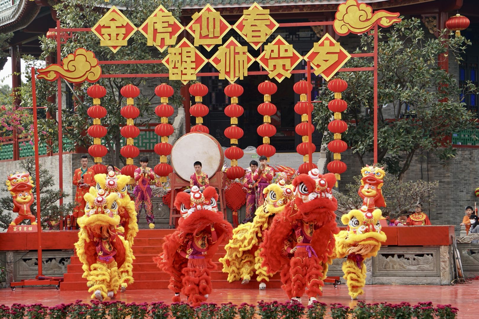 为了加快文旅市场的复苏,进一步提升广州番禺全域旅游品牌的知名度和影响力,同时给留穗过年的市民提供一场民俗文化盛宴,2022年春节期间,“金虎迎春,醒狮贺岁”——2022年宝墨园新春岭南醒狮民俗文化节启动,精彩的水上醒狮歌舞表演将在宝墨园荔景湖水上舞台上演。表演从年初一持续至年初六,每日有两场。
