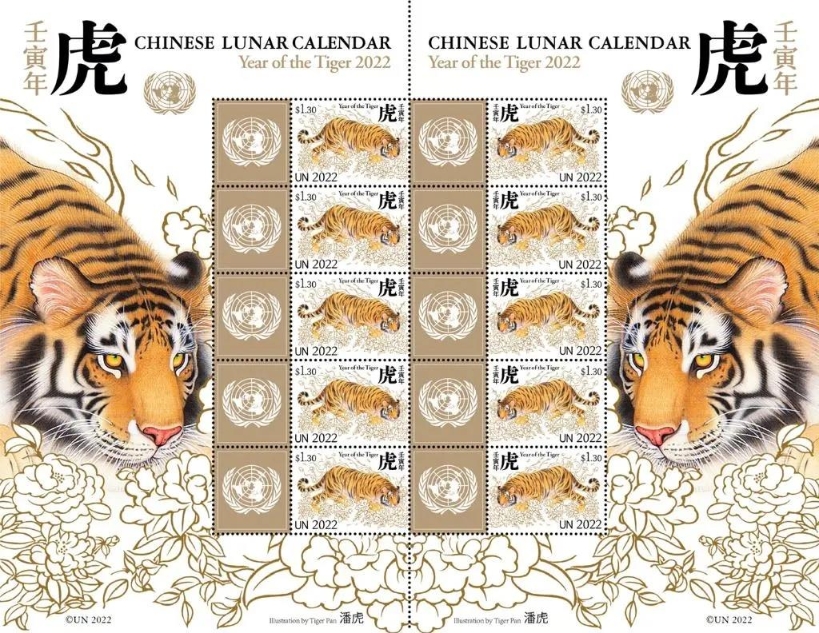 1月21日,联合国邮政管理局在纽约发行中国农历壬寅虎年特别版邮票版张,庆祝中国农历新年的到来。