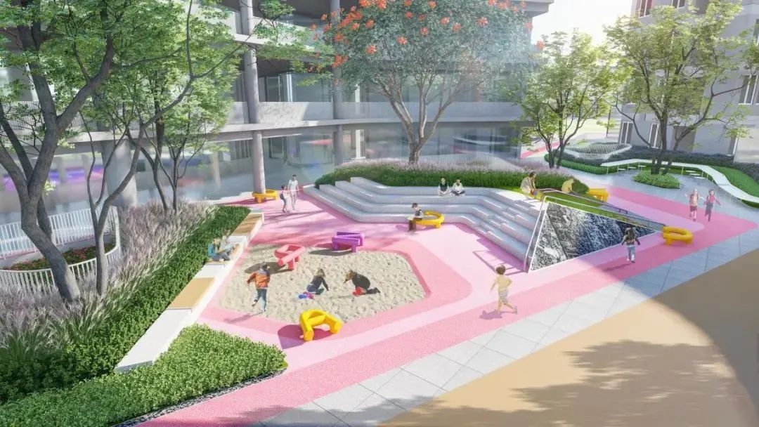 整个校园的纵横轴线都是隐性的,突显建筑方式因地制宜地生长延伸而成的非对称感。每个单体建筑以树枝的生长形态自然赋形,建立无缝对接、紧凑功能的教育综合体。“次级地面”“向心围合”“枝状生长”的构图与空间立意,共同汇集成“同根同心”的设计理念,建筑形体灵动活泼,疏朗大气,既体现了地域特色,也有望成为引领大湾区教育建筑创新设计的标杆。