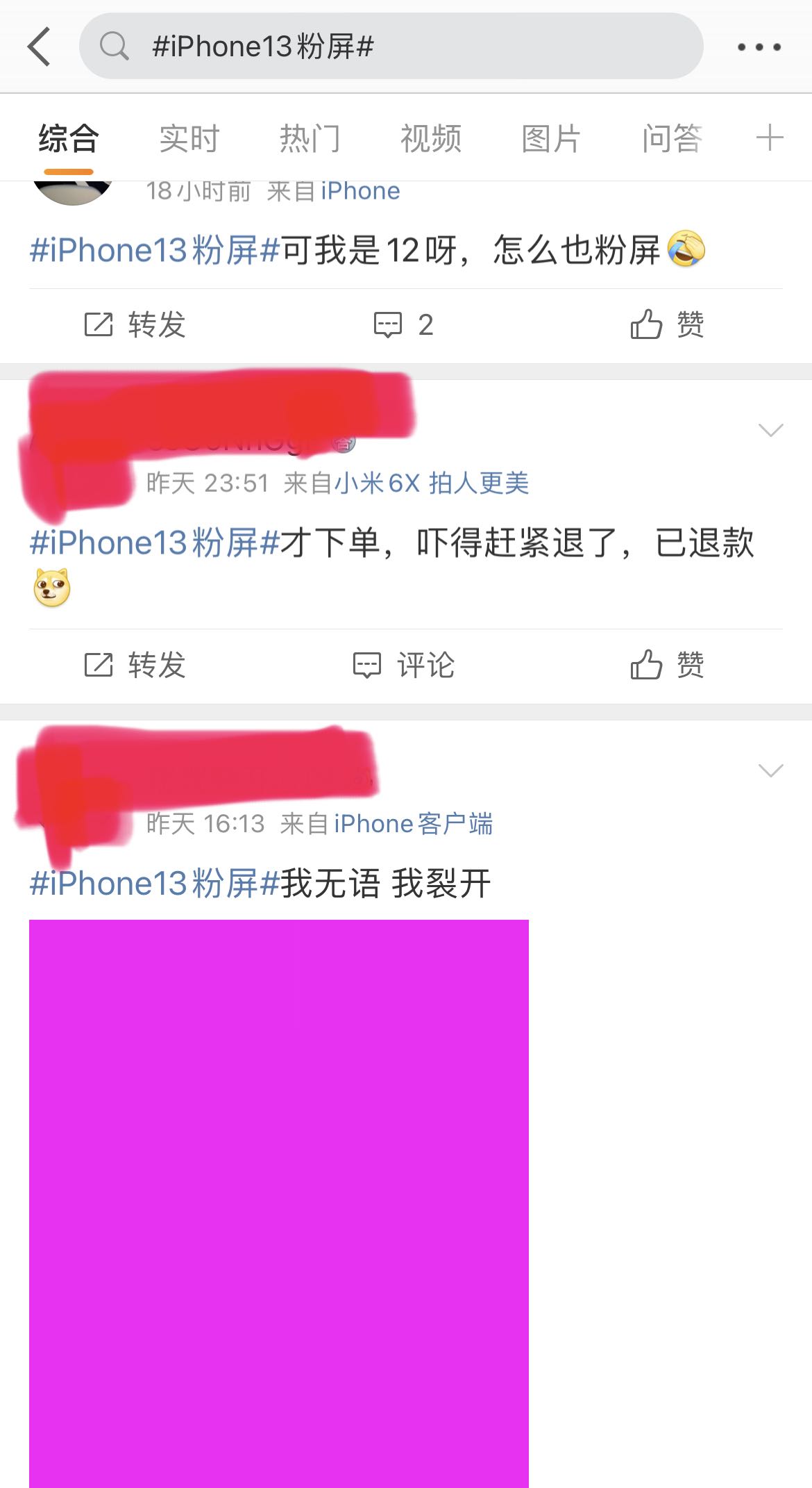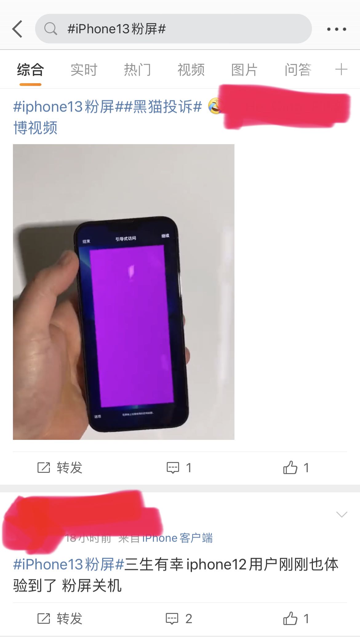 据悉,iPhone 13 用户发现,自己的手机屏幕会出现大范围的粉色色块,甚至整个屏幕都呈现出粉色,与此前的“苹果绿屏门”等效果类似。根据网友最初的反馈来看,只是iPhone 13、iPhone 13 Pro、iPhone 13 Pro Max会出现类似的问题,但是随着问题被曝光,还有网友投稿反馈称iPhone 12也出现类似问题。从用户上传的图片看,这些“粉屏手机”有些整个屏幕都变成粉色,有些则出现局部变粉以及触摸不灵、黑屏和自动重启等情况。