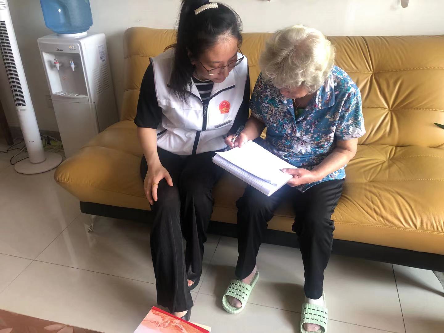 一周前的一个夜晚,刘晶晶正组织社区进行全员核酸检测,突然一位同事面色焦急地跑过来,“刘主任,我发现有一对老夫妇瘫坐在外,不知道怎么了。”话毕,刘晶晶立马跑出去,在长长的排队人流中,只见一位白发苍苍的老伯手扶着一部老年人助步车坐在路边,一位老太正蹲在他旁边帮他擦虚汗。