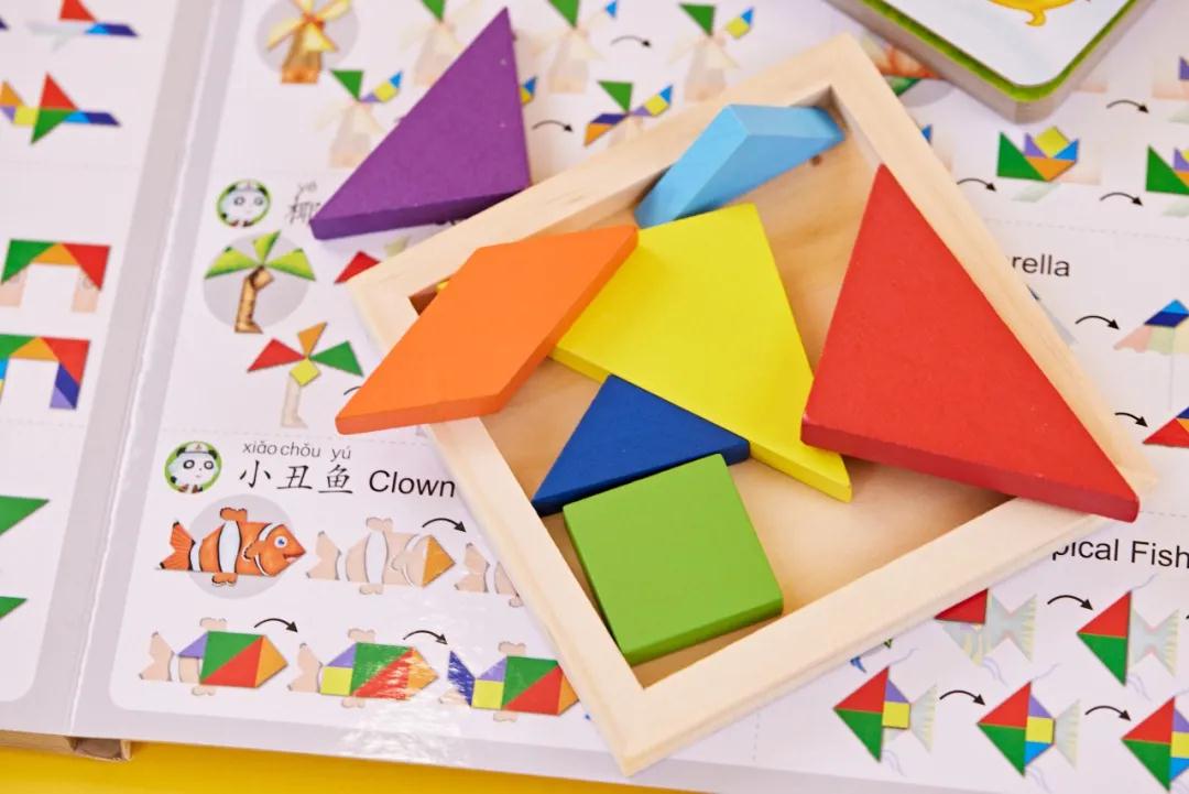 孩子在阅读有趣好玩的绘本故事时,可以跟着故事中的图一起动手做,将小小的七巧板按照图中所示,拼接出各种各样的图形,不仅开发孩子创意,而且可让其对大小、方向、位置等概念更明确,为将来的学习打下基础。