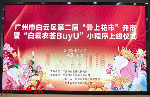 1月7日,广州市白云区第二届“云上花市”正式开市,“白云农荟BuyU”小程序同时上线。