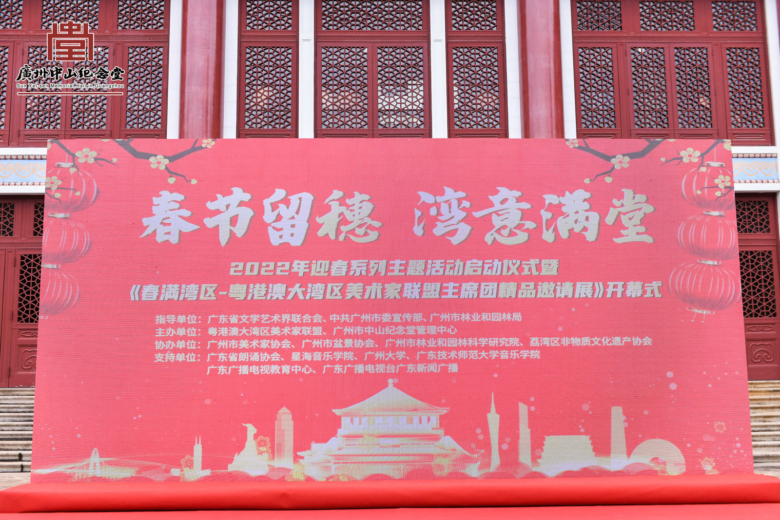1月25日,广州中山纪念堂“春节留穗 湾意满堂”2022年迎春系列主题活动启动仪式暨《春满湾区——粤港澳大湾区美术家联盟主席团精品邀请展》开幕式正式举行。作为广州新春活动的重头戏之一,广州中山纪念堂迎春系列主题活动不仅有汇聚粤港澳三地20名美术名家的大师书画展,还有升级版的《花城四季赏花全域地图》首次亮相,另外还有粤港澳大湾区盆景精品展、自然科普展、 “展非遗魅力享文化活力”活动等等,让广州市民足不出户就能在家门口尽情饱览文化盛宴,感受粤港澳大湾区文化与艺术的无穷魅力。