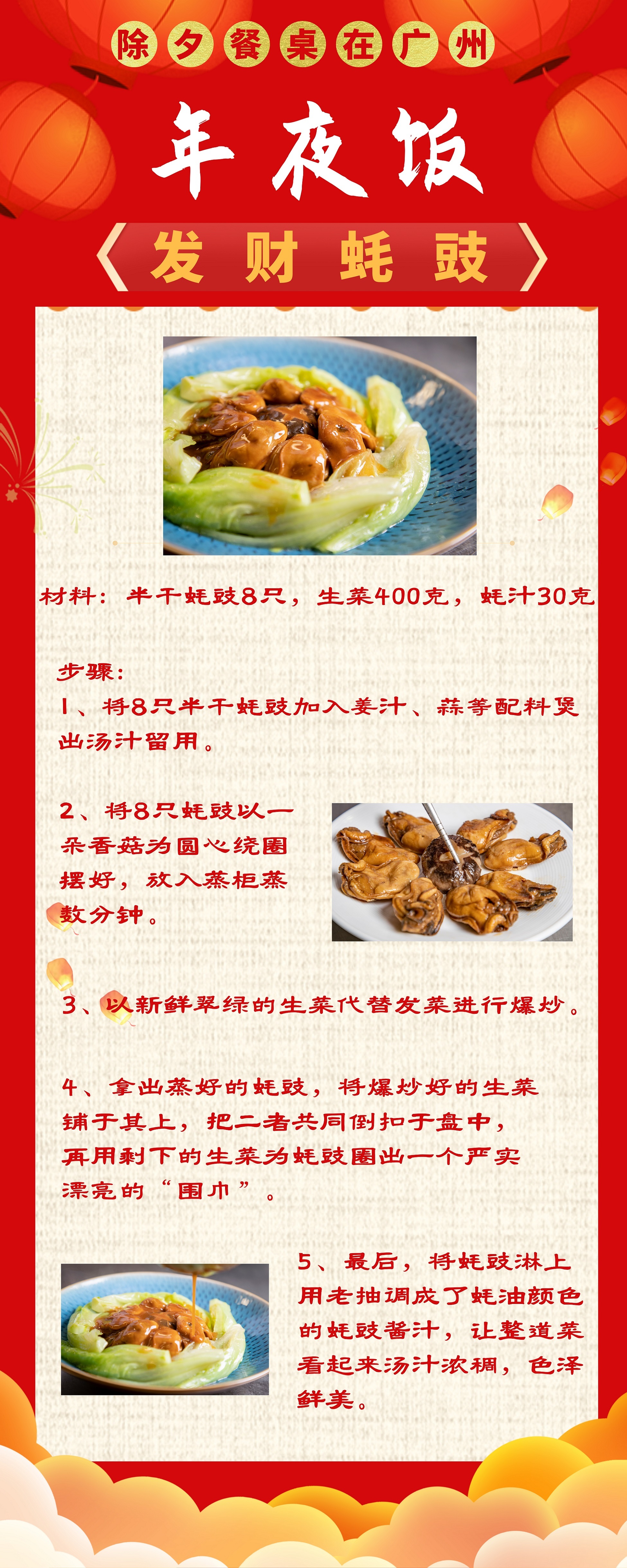 发财蚝豉是一道意头上佳的著名粤菜,谐音有“发财好市(事)”之意,即财运好、市道好,一口蚝豉下肚,好事连连而来。原本“发财”取自食材发菜之谐音,但现在用生菜替代,照样能做出卖相不俗、风味绝佳的菜肴。挑选蚝豉有讲究,广州酒家体育东店厨师长宁铭文的标准是“半干”。如何制作呢?一起来看。