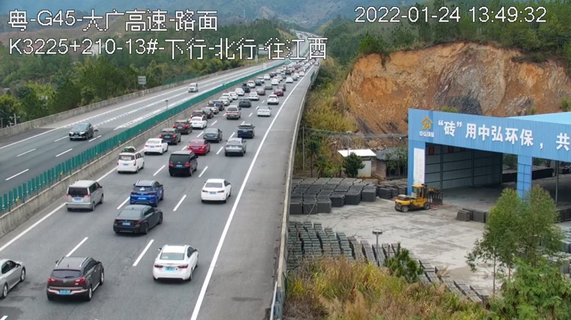 2022年春运正在平安有序进行中,珠三角地区前往湘鄂赣地区最便捷通道之一的广州交投集团大广高速,迎来一年中车流最繁忙的时段。根据统计,1月20日至23日,是大广高速春运的第一个小高峰,四天总车流量预计46万车次,其中出省车流量达16万车次,出省车流量比春运前增幅225%。记者从1月24日大广高速部分路段的监控画面中看到,往江西方向车流密集,与对向车道形成鲜明对比。