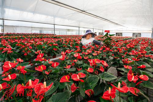 农民是乡村振兴的主体,乡村振兴的出发点和落脚点是为了让农民生活得更美好。从化以花为媒,将人气聚在乡村,让产业落地在乡村,大至农业龙头企业,小至普通农户皆有所获。据统计,如今从化全区共培育龙头企业、农民专业合作社等新型经营主体316个,推广企业就地招聘、土地入股、大棚承包和协会带动等模式,辐射带动180多条行政村共3.8万农民从事花卉相关产业。