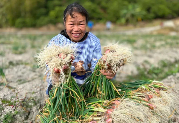 日前,红葱头大量上市,张彩金一天就收成好几百斤红葱头。“收了红葱头要放田上晒一两天,然后用袋子装回家里放5天,之后再拿出来晾晒。红葱头从田间收成到上市要历时7到8天,期间还要确保不下雨,收成期间下雨的话,红葱头很容易爆裂,品相就不好了”。张彩金说。