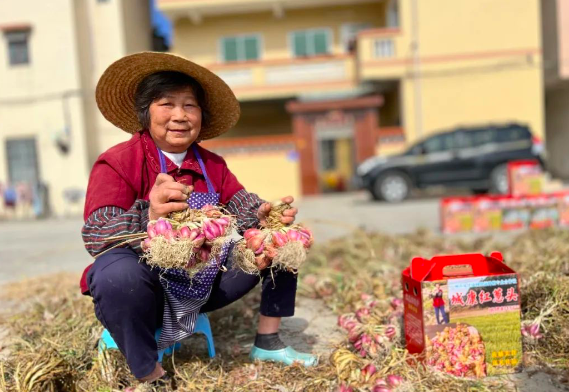 另一位农户容姨介绍,“只要看红葱头的捆扎方法就可辨认是否是城康红葱头了,城康红葱头都捆扎成发髻的形状,精心修剪须根,捆扎好的红葱头就好像一个花球一样。”