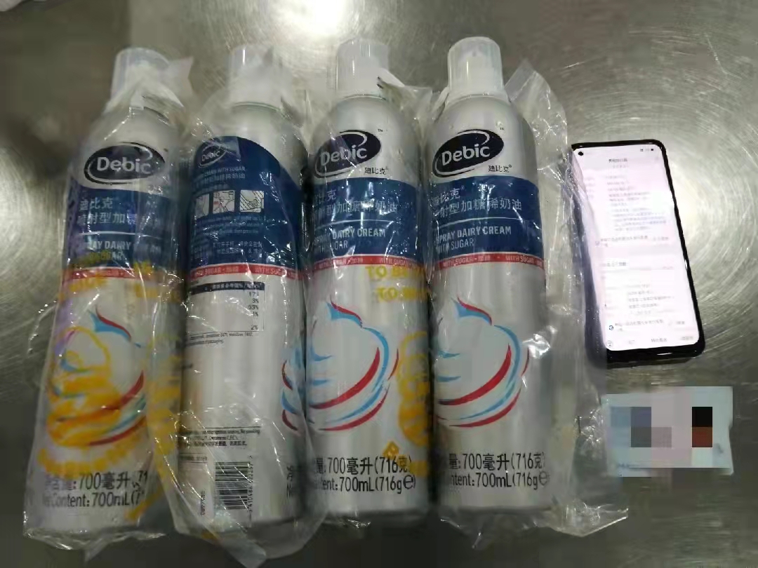 1月21日上午,深圳铁路公安处福田站派出所民警在安检口巡查时,发现旅客柯先生的行李里有4瓶罐装喷射奶油,共2800毫升。柯先生解释称,自己是糕点师,觉得食用级的罐装喷射奶油可以吃,应该能带上车。民警耐心解释:罐装喷射奶油有易爆风险,除此之外,还有食用色素喷雾、部分食用油喷雾都属于压缩喷雾,是不能携带上车的。柯先生听后认识到危险性,主动放弃了4瓶奶油。