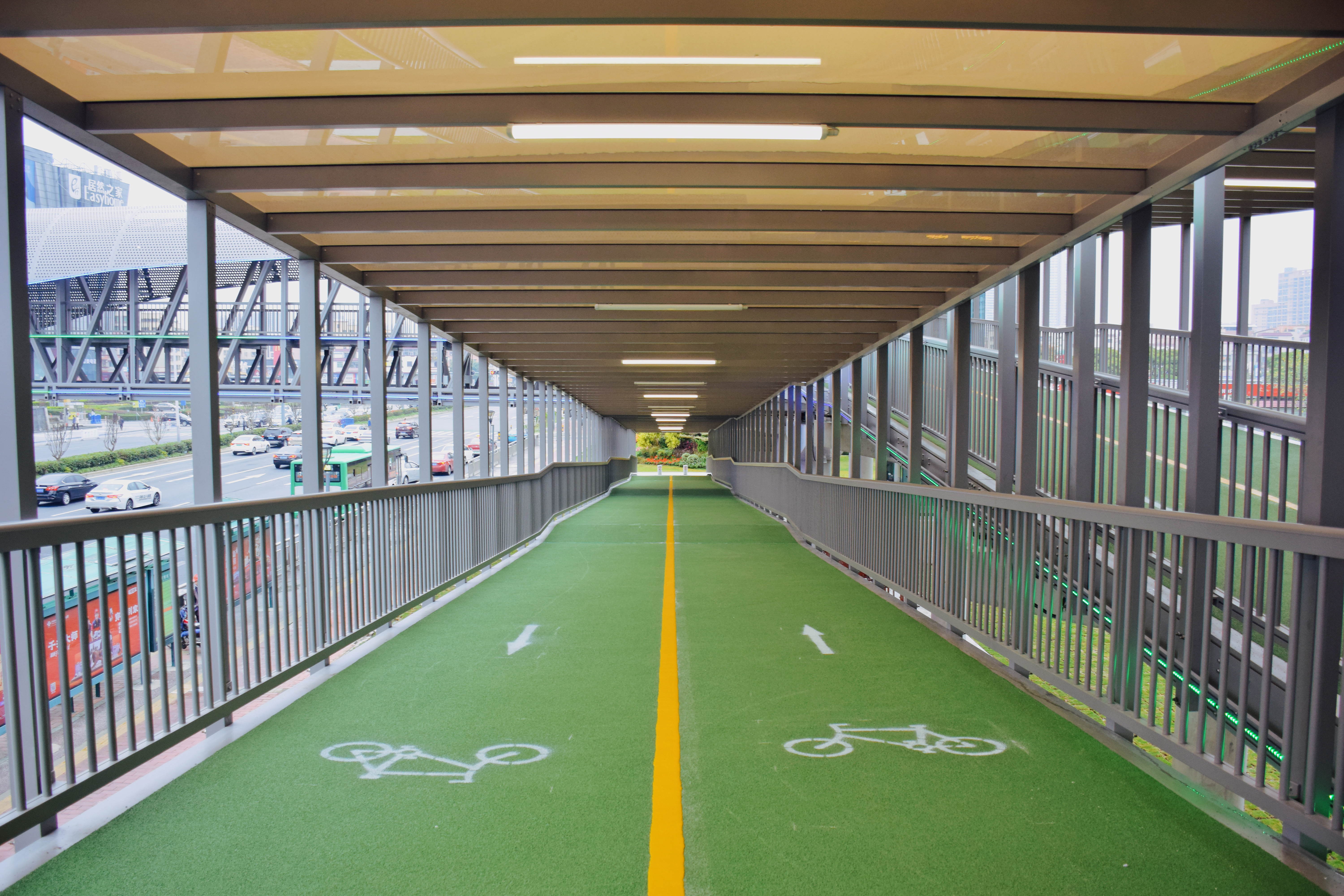 从远处看,这座天桥好像在空中悬着“两层楼”,走近看,这座桥颇具现代艺术风格和潮流气息。在功能上,禅城区在建设这座铝合金天桥人行梯道时,首次使用独立的非机动车专用车道,电动车与自行车也可推行过桥,行人过街效率得到较大提高,完美诠释了“美丽与实力并存”。 此外,该桥也是佛山市首座铝合金天桥。