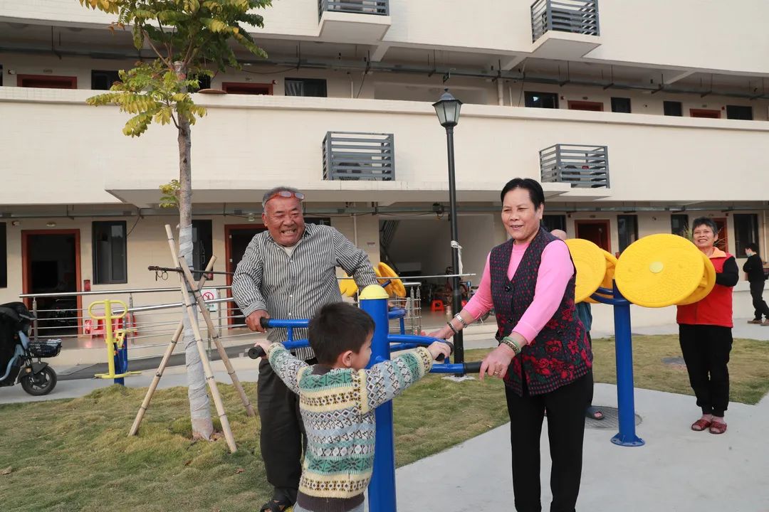 安置区不仅给老人们提供了一套一室一厅一厨一卫的套房,还贴心地配套建设了各种健身设施。
