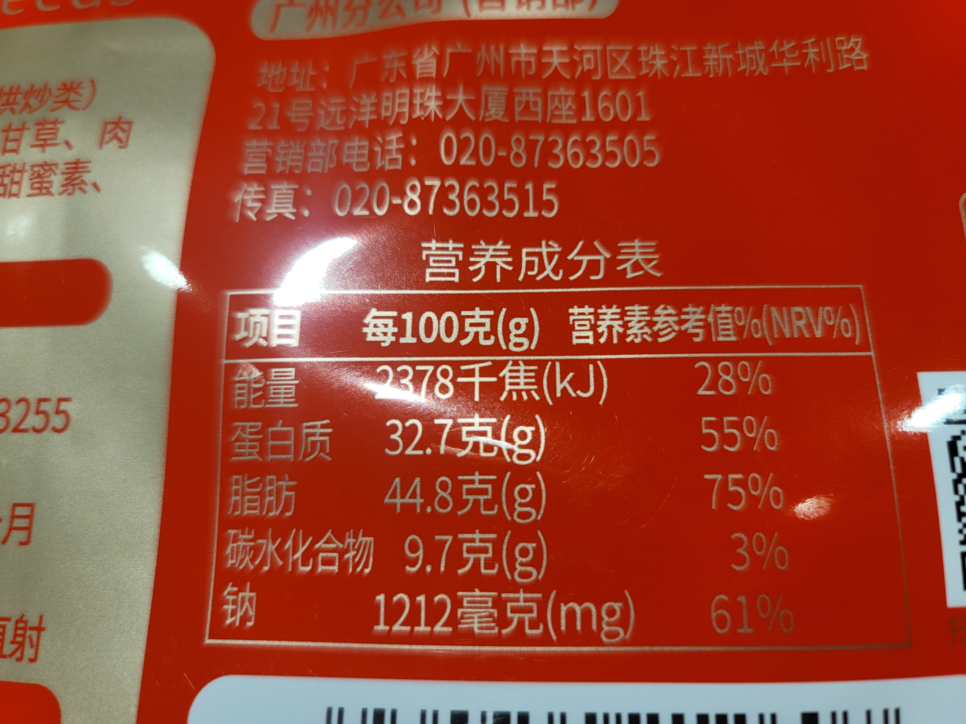 与此同时,零食中的高盐现象也非常普遍,“重口味”的辣条食品成为“重灾区”。某品牌一款亲嘴烧调味面制品,其营养成分表中,钠含量为2650mg/100g;一款自称“不含甜蜜素”的地道辣条,钠含量也高达2740mg/100g。